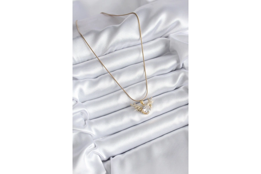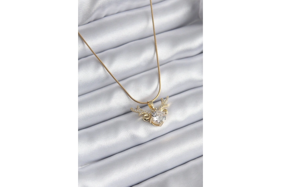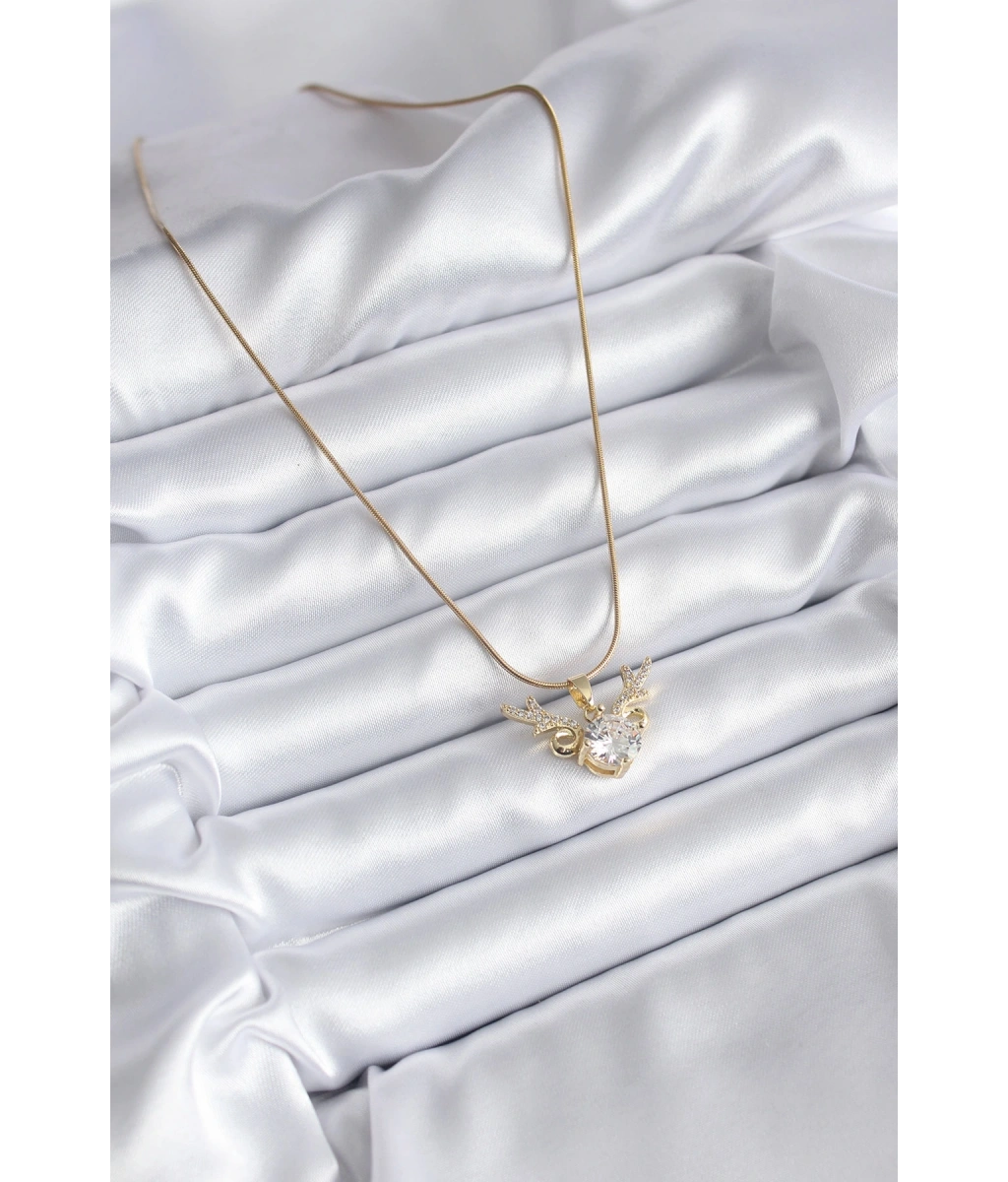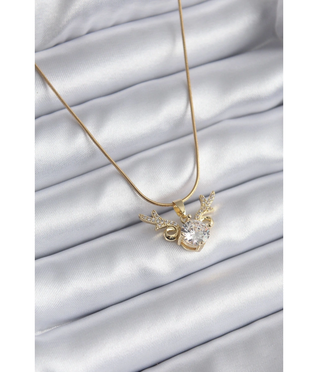Shoecide 316l Çelik Gold Renk Zirkon Taşlı Boynuz Model Kadın Kolye