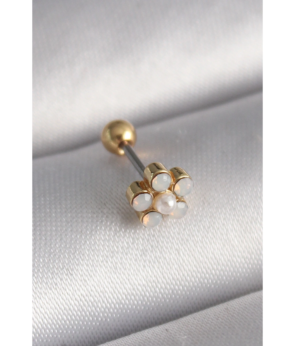 Shoecide 316l Çelik Gümüş Renk Zirkon Taş Detay Beyaz Çiçek Model Tragus Piercing