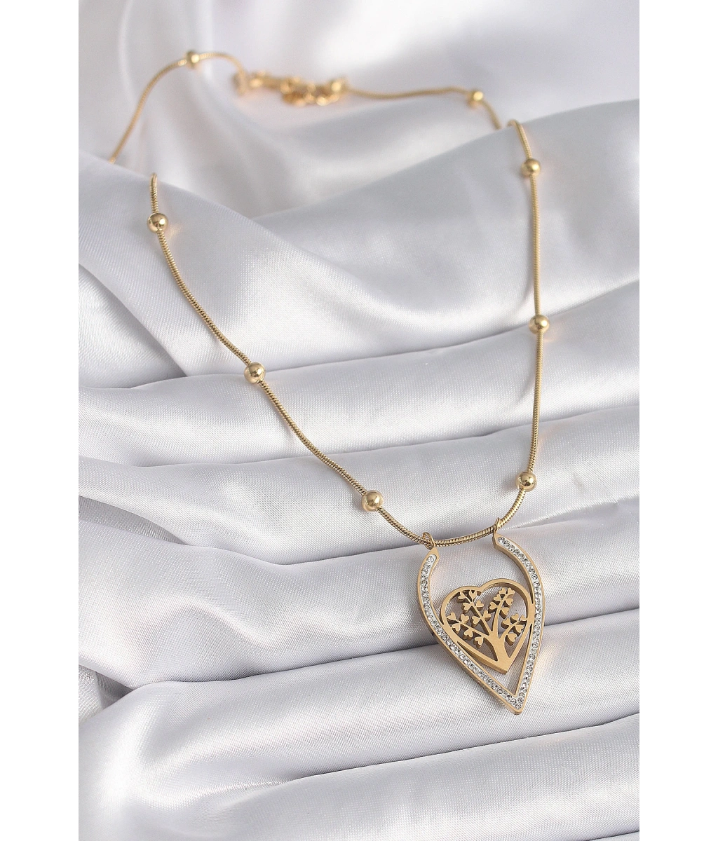 Shoecide 316l Çelik Gold Renk Zirkon Taşlı Detaylı Kalp Fidan Model Kadın Kolye