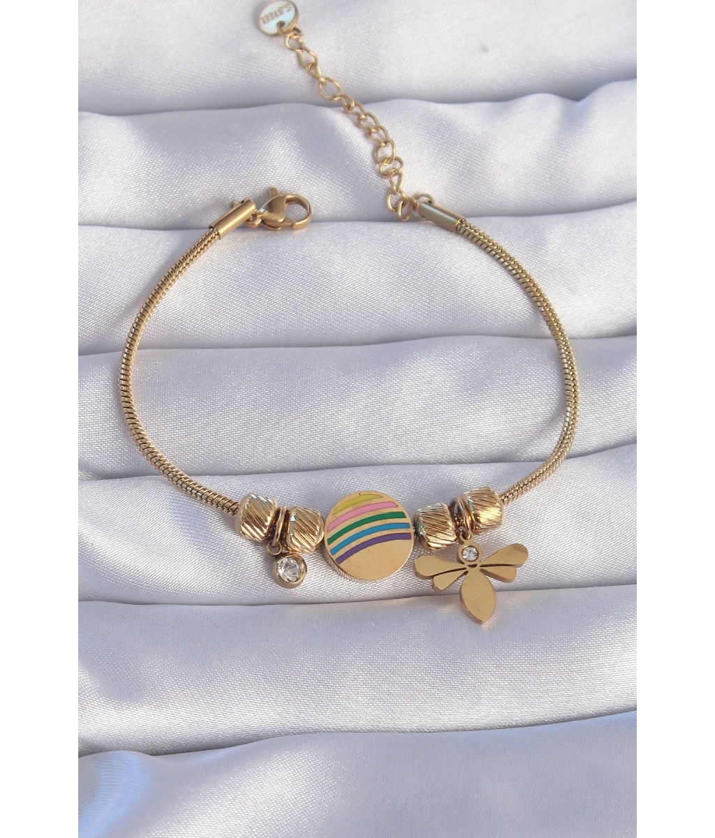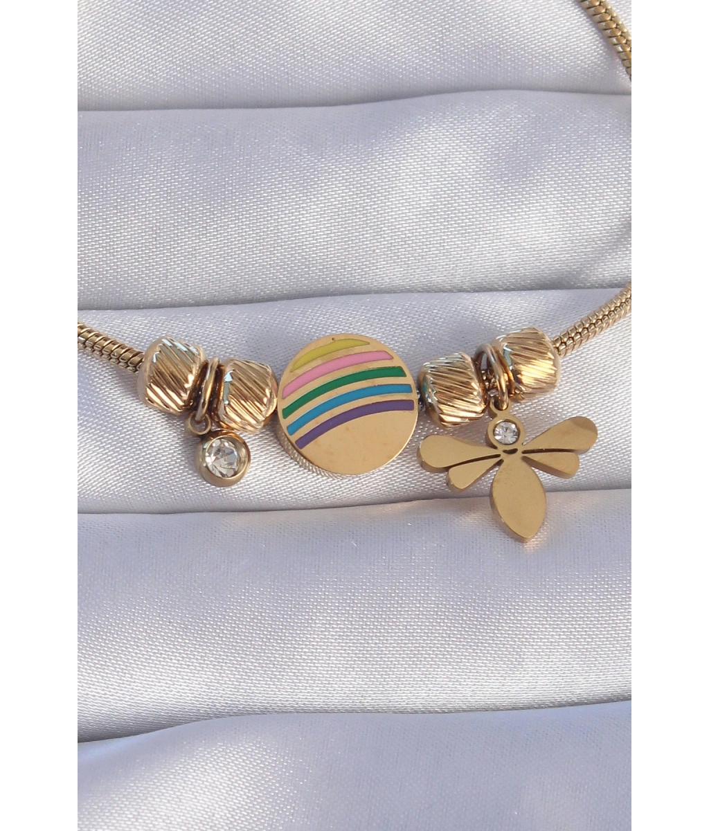 Shoecide 316l Çelik Gold Renk Zirkon Taşlı Gökkuşağı Tasarımlı Yusufçuk Bileklik