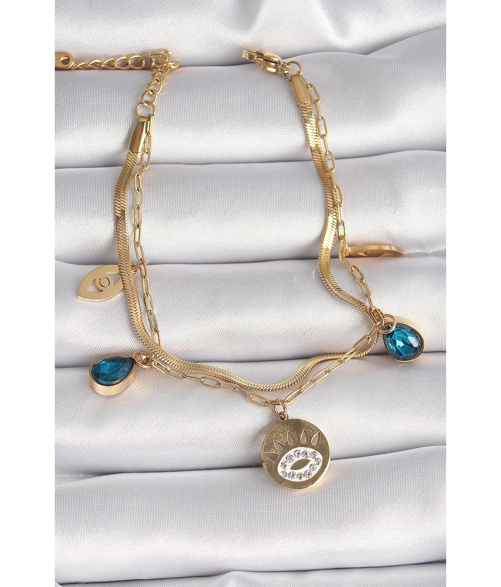Shoecide 316l Çelik Gold Renk Zirkon Taşlı Göz İşleme Figür Kadın Bileklik