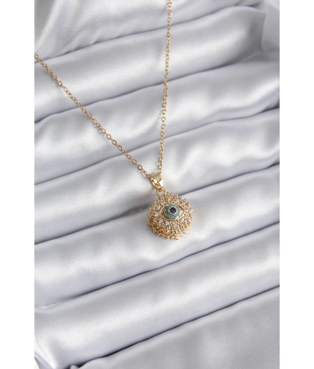 Shoecide 316l Çelik Gold Renk Zirkon Taşlı Göz Model Kadın Kolye