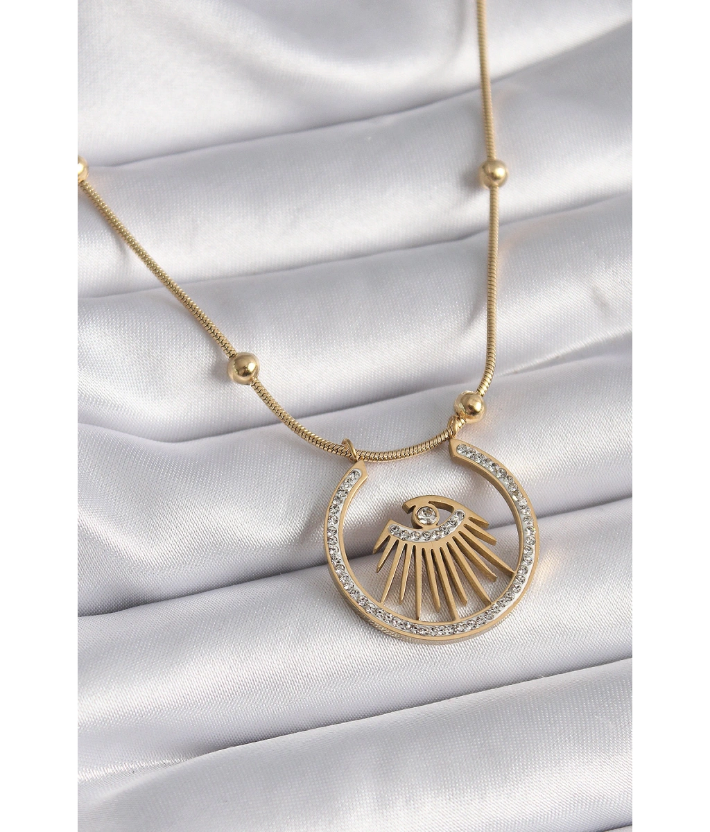 Shoecide 316l Çelik Gold Renk Zirkon Taşlı Göz Model Kadın Kolye