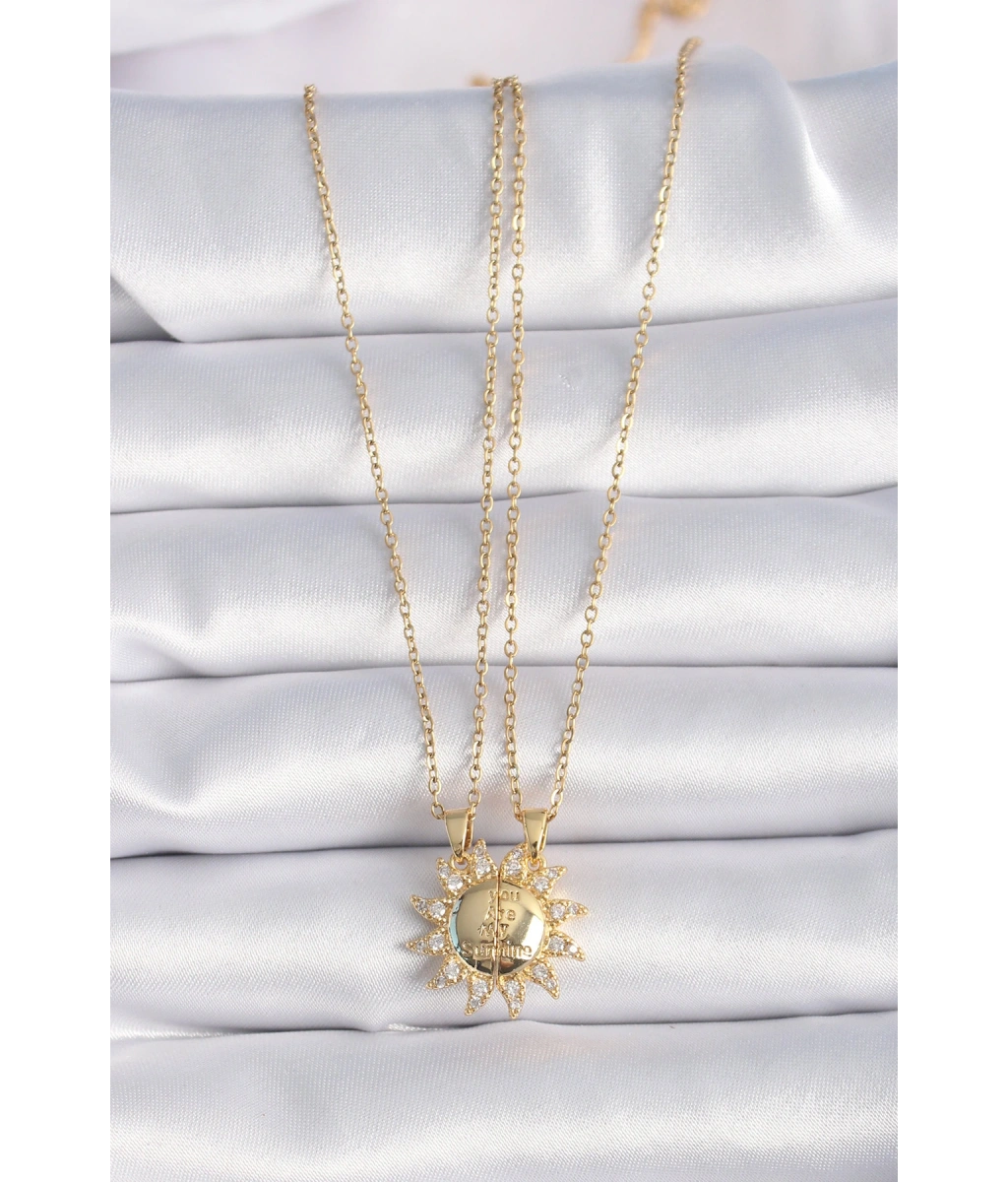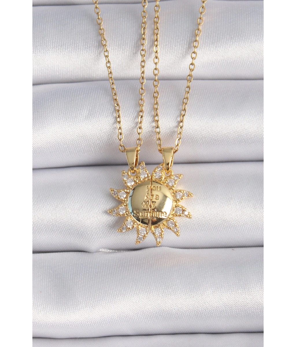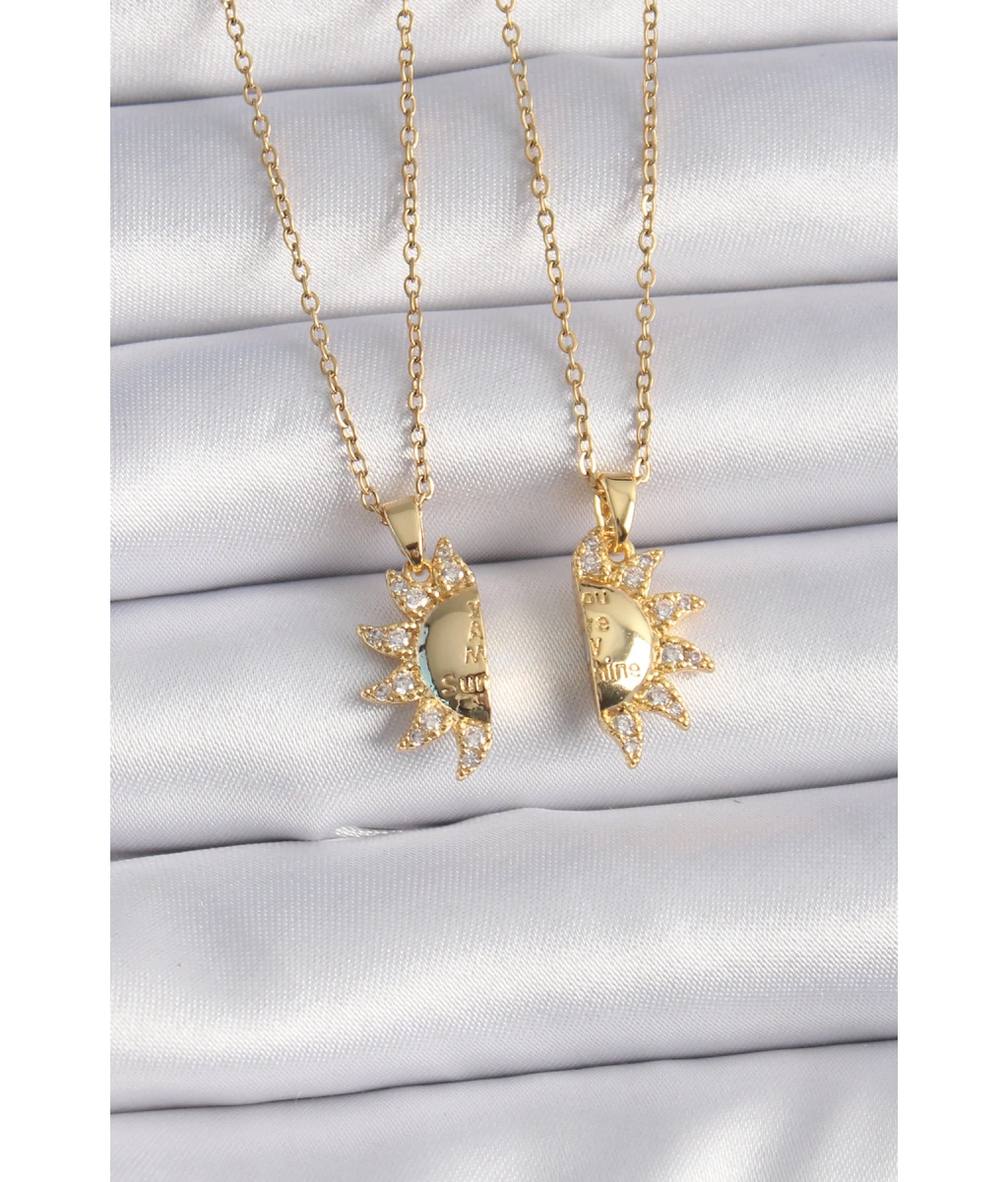 Shoecide 316l Çelik Gold Renk Zirkon Taşlı Güneş Model İşleme Yazı Detay Arkadaş Kolyesi