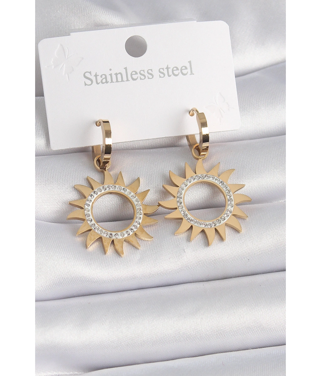 Shoecide 316l Çelik Gold Renk Zirkon Taşlı Güneş Model Kadın Küpe