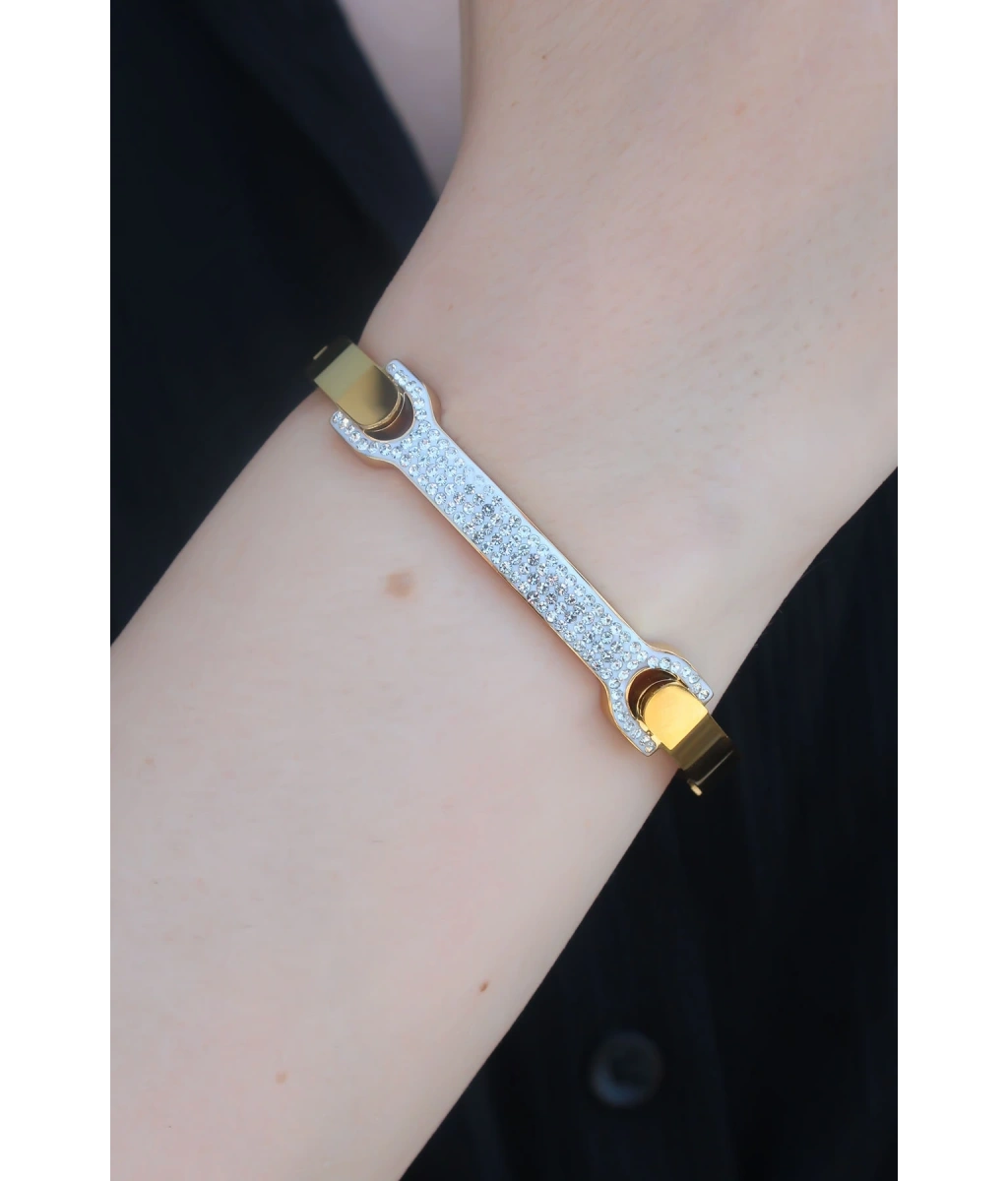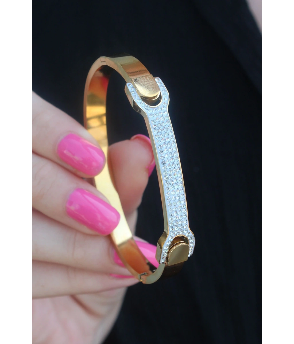 Shoecide 316l Çelik Gold Renk Zirkon Taşlı Kadın Kelepçe