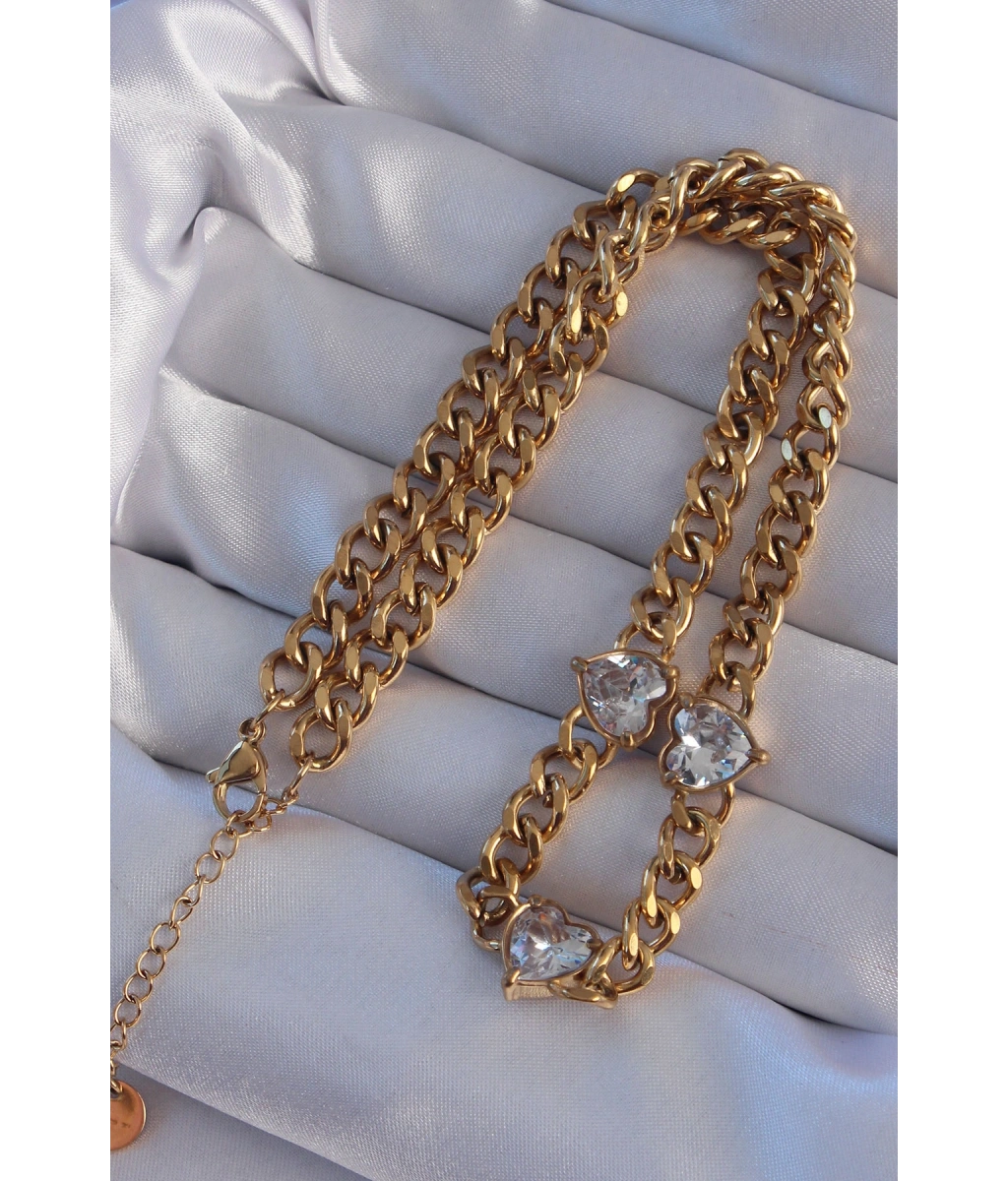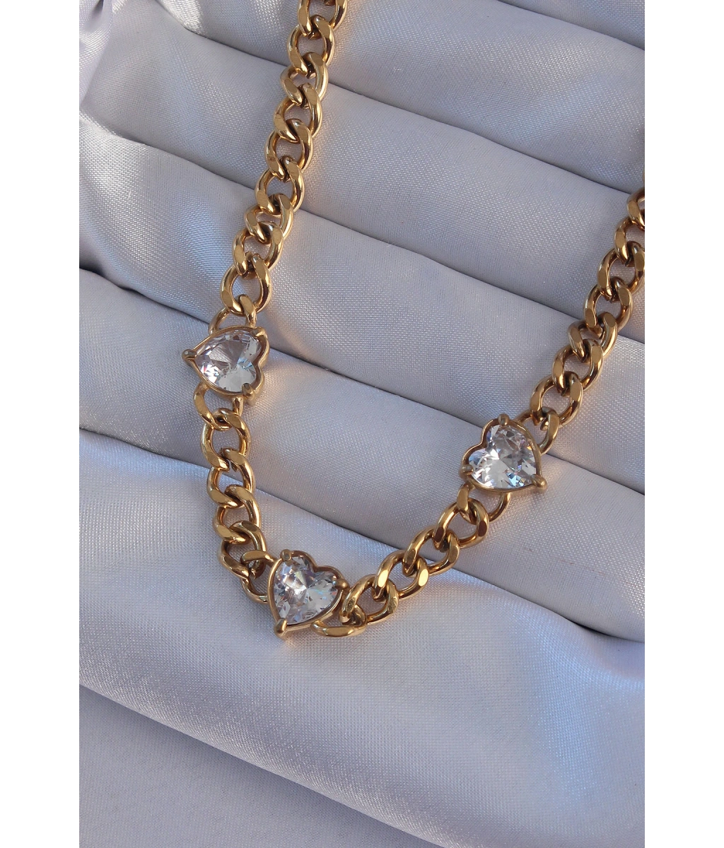 Shoecide 316l Çelik Gold Renk Zirkon Taşlı Kalp Model Zincir Kolye