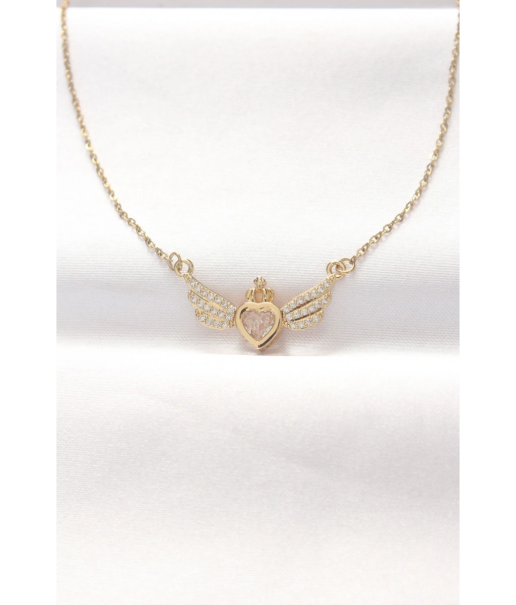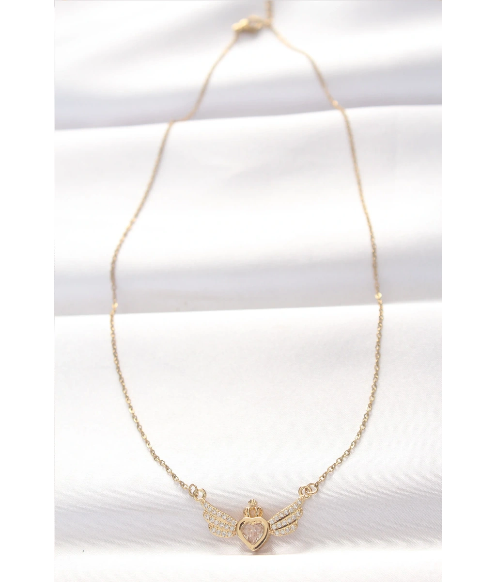 Shoecide 316l Çelik Gold Renk Zirkon Taşlı Kalpli Kanat Kolye