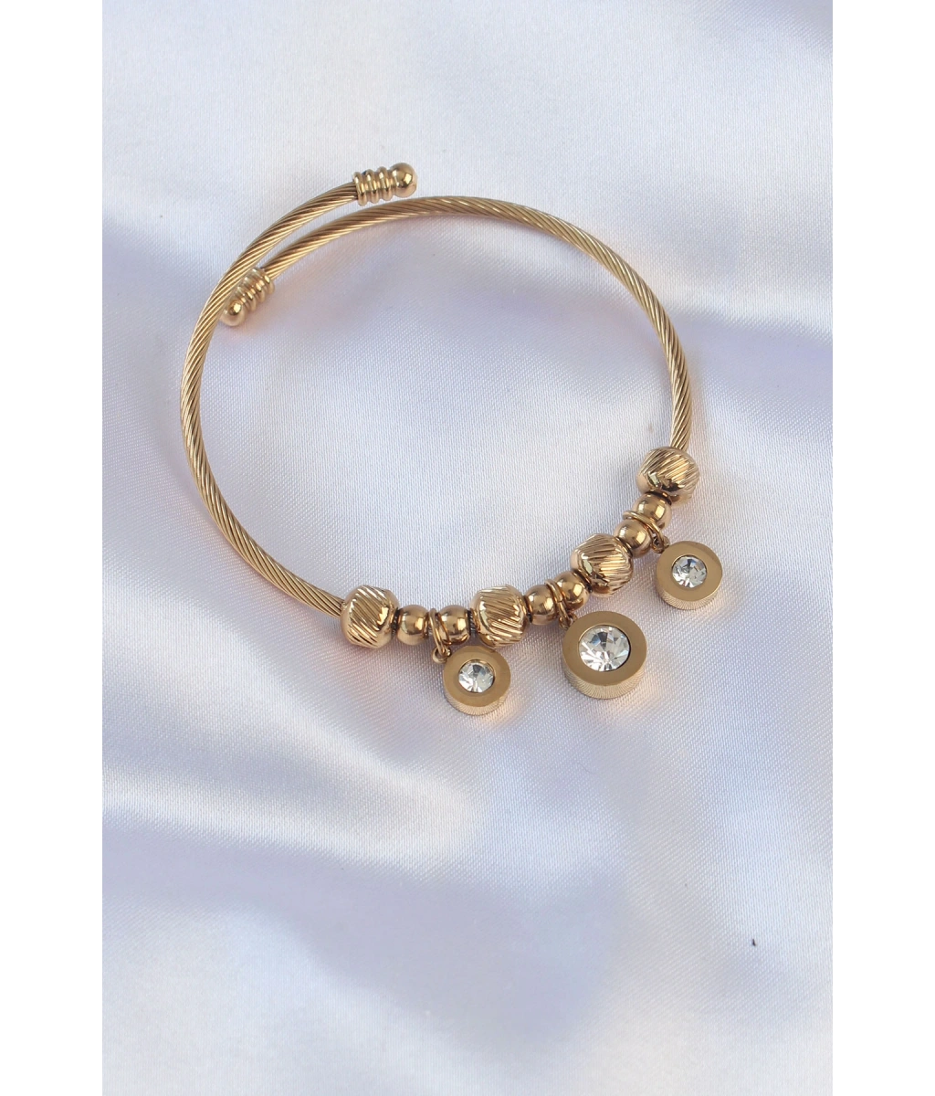 Shoecide 316l Çelik Gold Renk Zirkon Taşlı Model Charm Bileklik