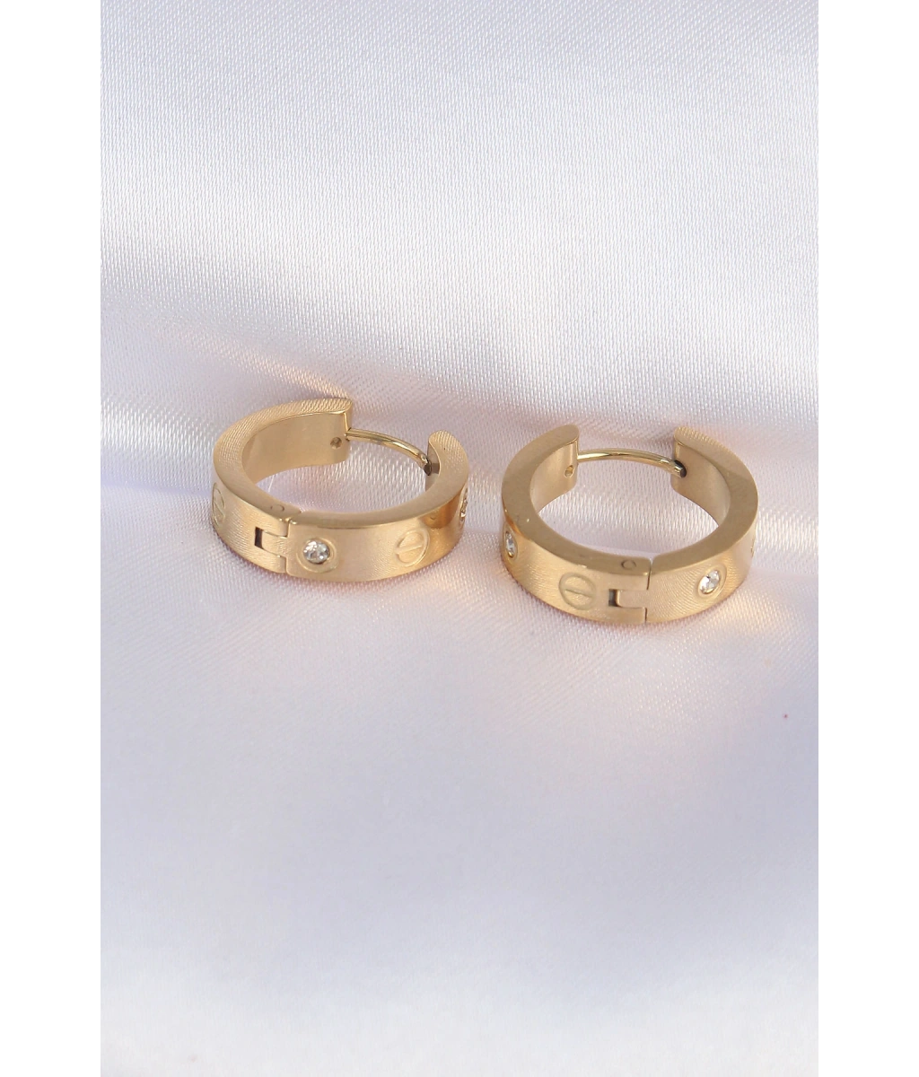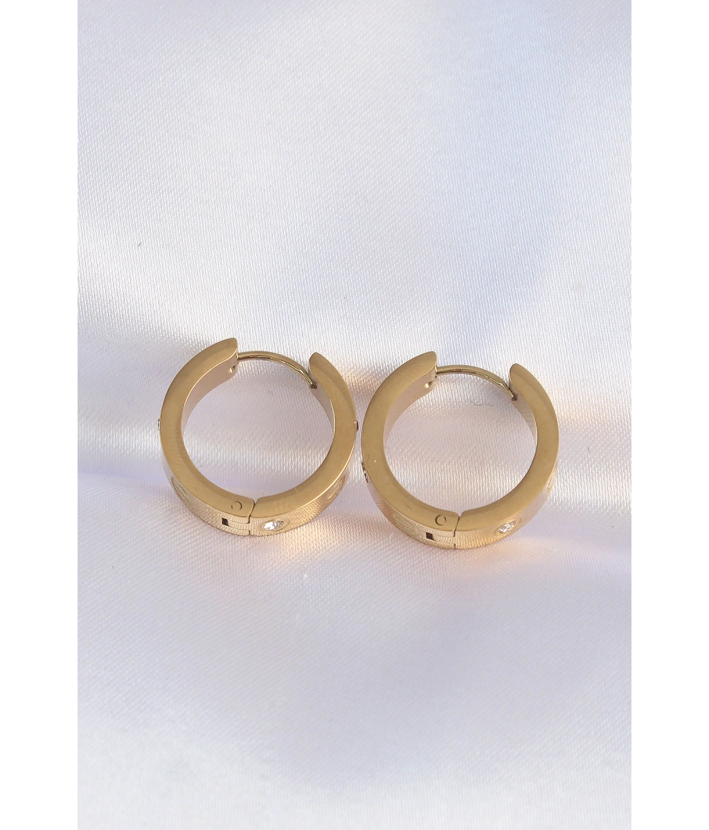 Shoecide 316l Çelik Gold Renk Zirkon Taşlı Model Halka Küpe