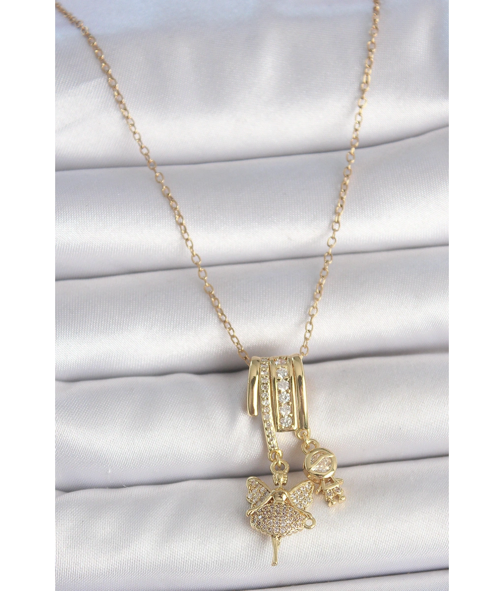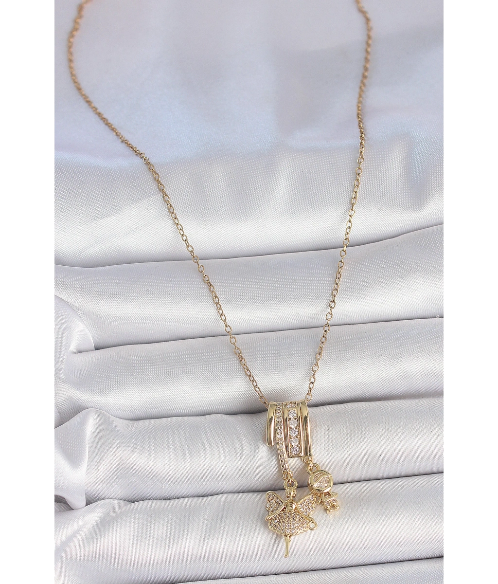 Shoecide 316l Çelik Gold Renk Zirkon Taşlı Sallantı Melek Figür Charm Kadın Kolye