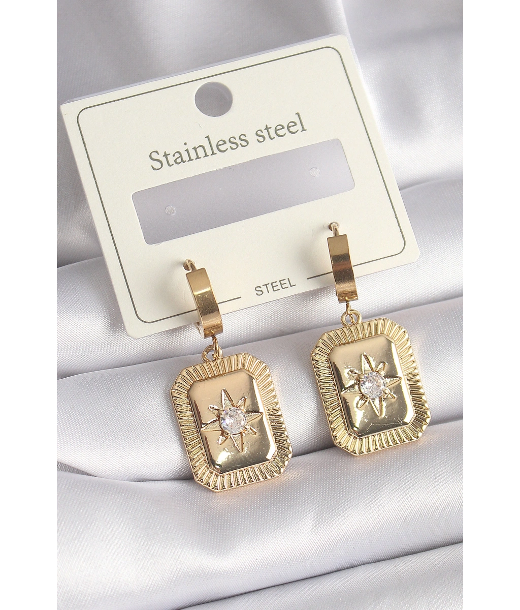 Shoecide 316l Çelik Gold Renk Zirkon Taşlı Yıldız İşlemeli Kadın Küpe