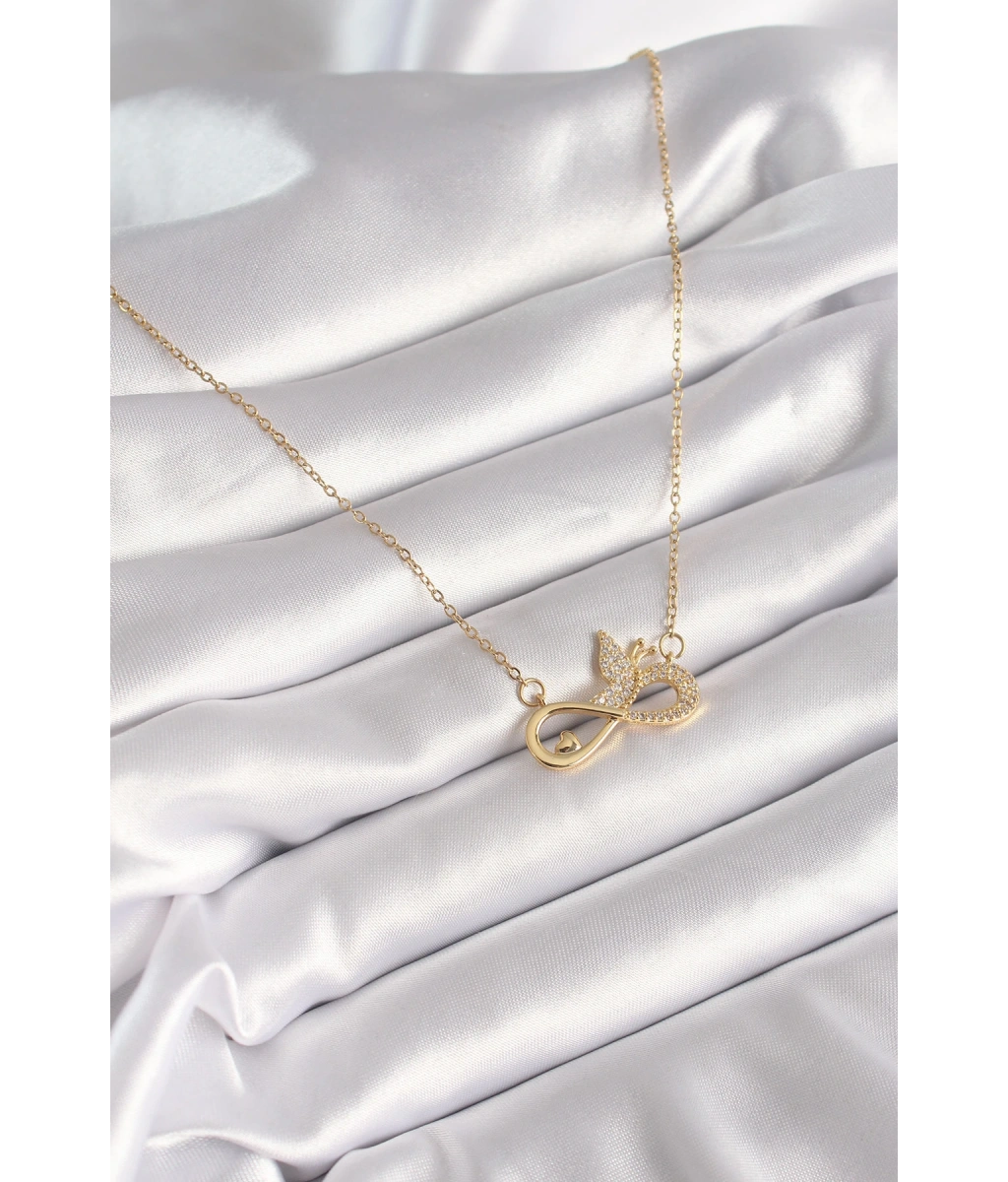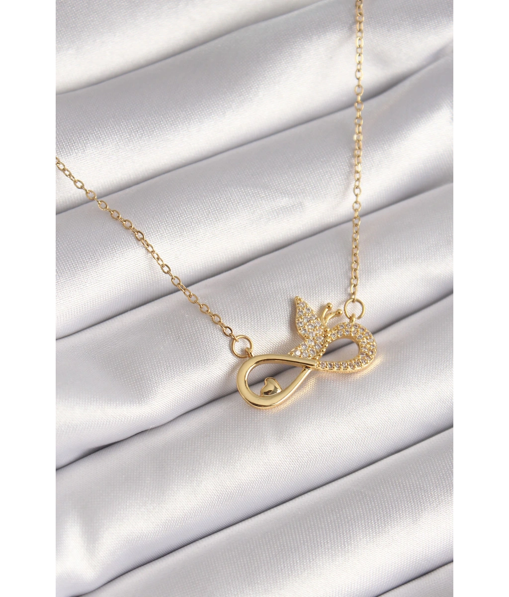 Shoecide 316l Çelik Gold Renk Zirkon Zincir Taşı Sonsuzluk Kelebek Model Kadın Kolye