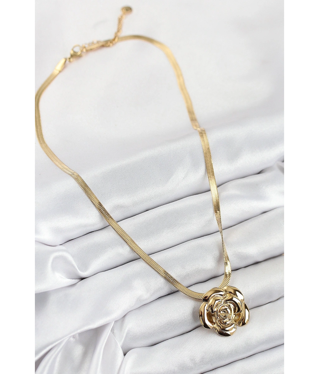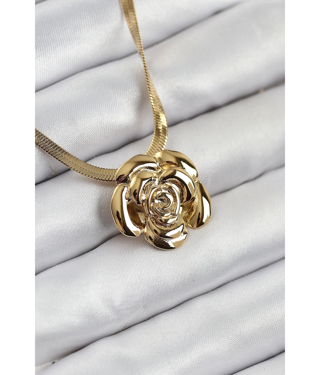 Shoecide 316l Çelik Gül Figürlü İtalyan Zincir Model Gold Renk Kadın Kolye