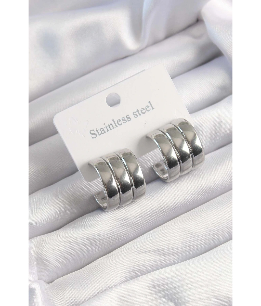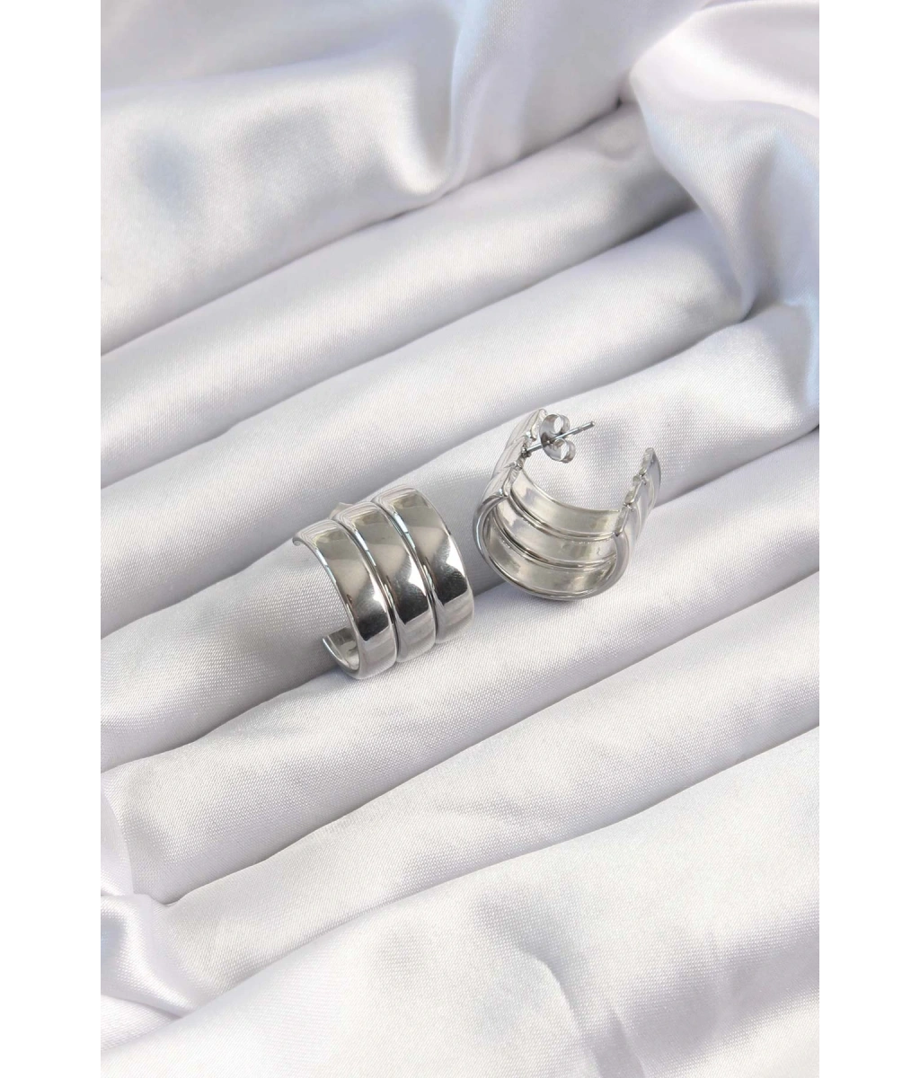 Shoecide 316l Çelik Gümüş Renk 3lü Görünüm Bombe Model Yarım Halka Küpe