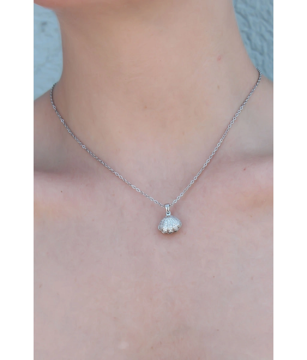 Shoecide 316l Çelik Gümüş Renk Açılır Midye Model Kadın Kolye