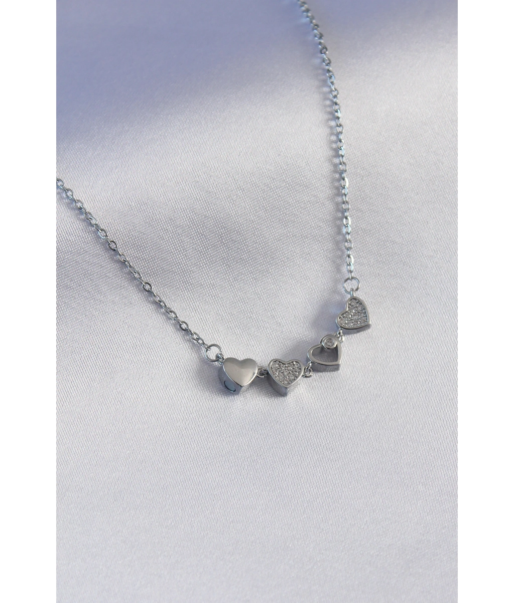 Shoecide 316l Çelik Zincir Gümüş Zirkon Taşlı Kalpli Kadın Kolye