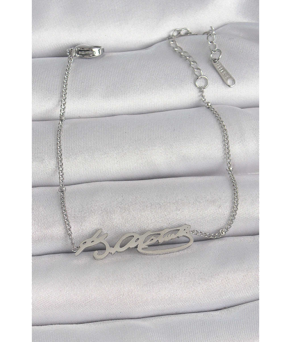 Shoecide 316l Çelik Gümüş Renk Atatürk İmza Model Kadın Bileklik