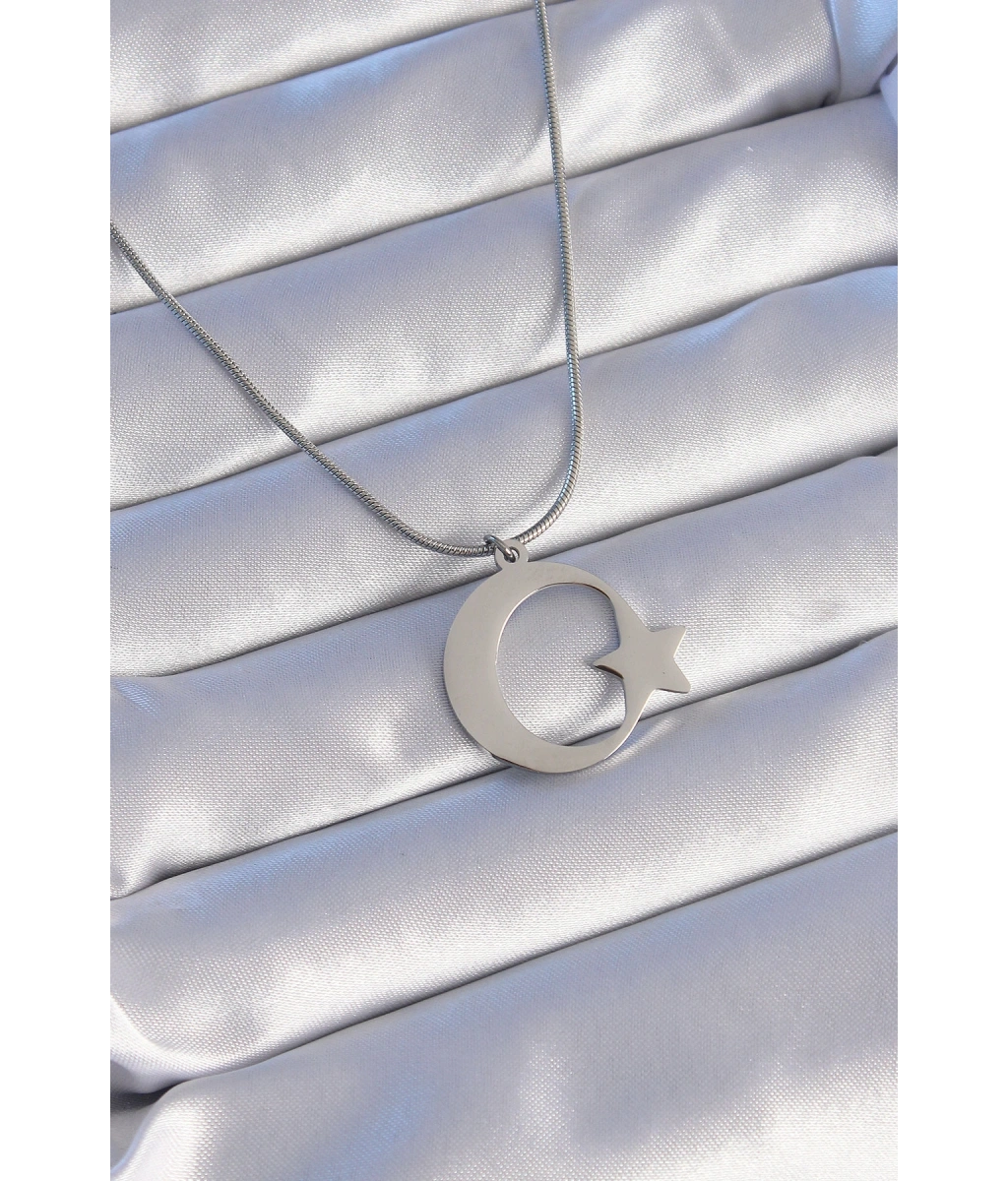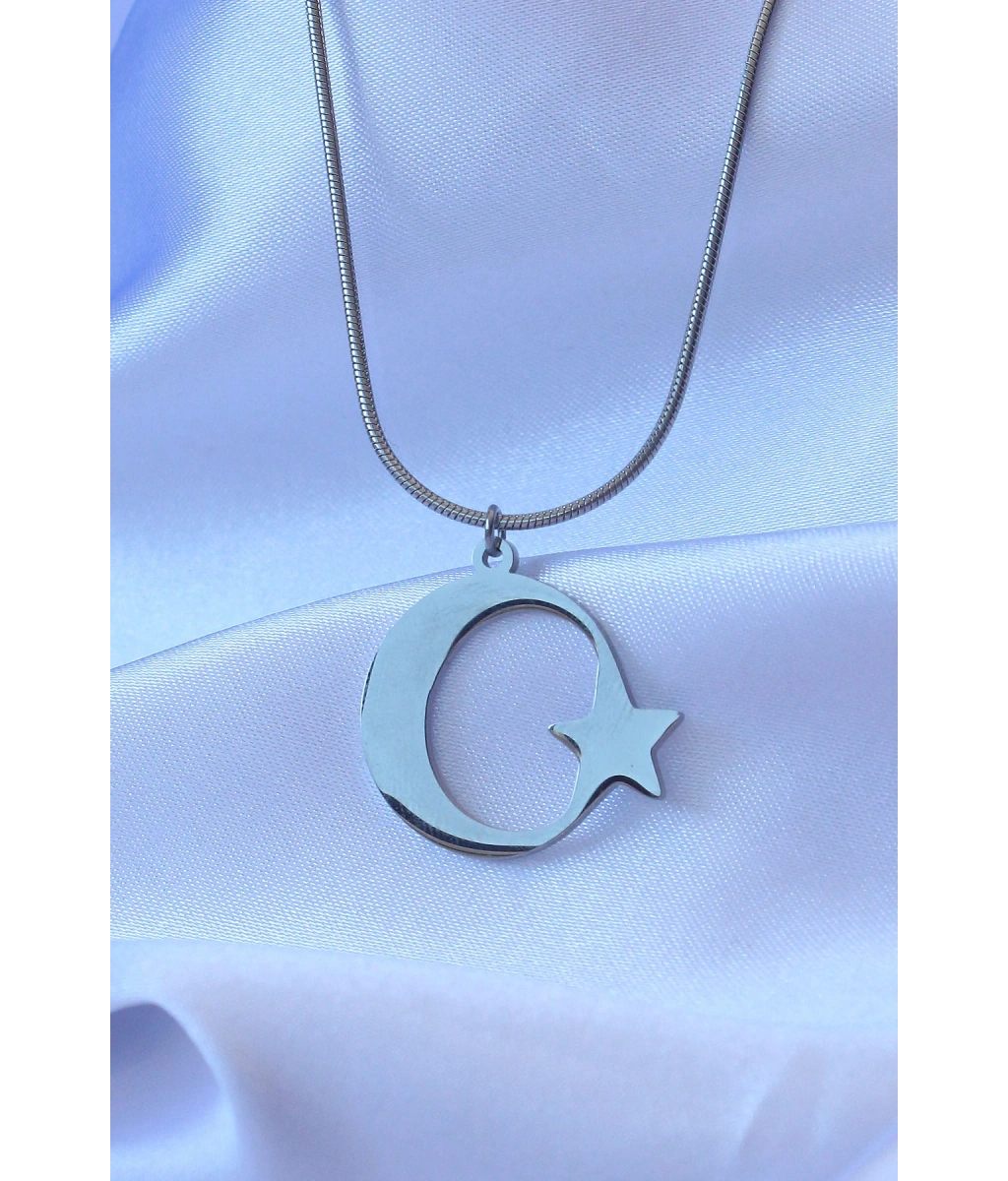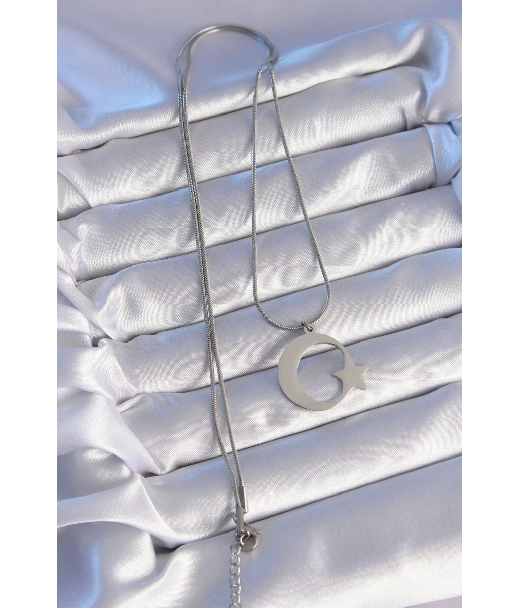 Shoecide 316l Çelik Gümüş Renk Ay Yıldız Model Unisex Kolye