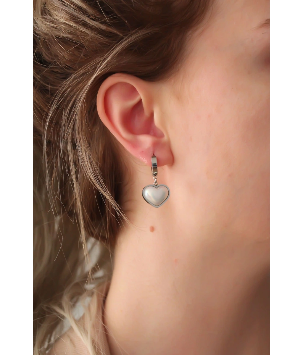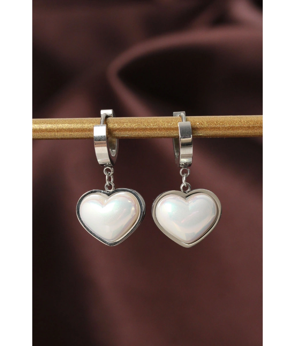 Shoecide 316l Çelik Gümüş Renk Beyaz Bombeli Kalp Küpe