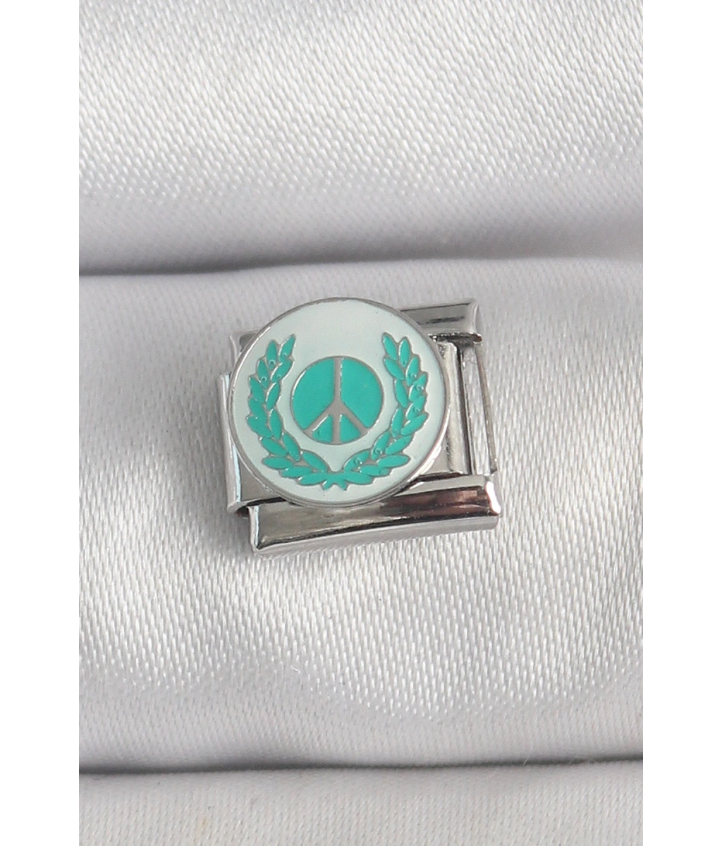 Shoecide 316l Çelik Gümüş Renk Beyaz Mavi Barış İşareti İşlemeli Nomination Charm