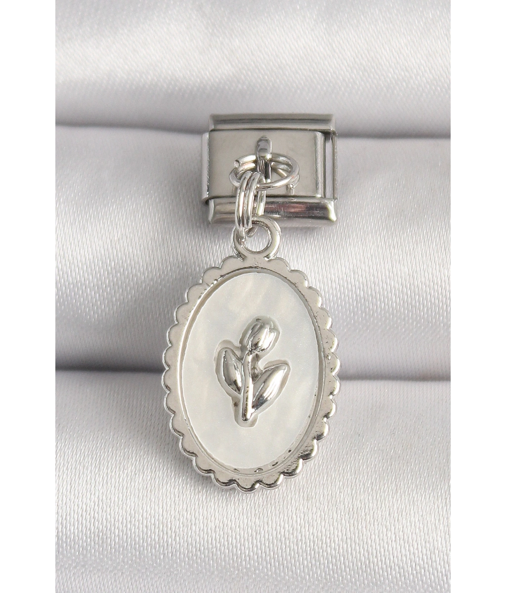 Shoecide 316l Çelik Gümüş Renk Beyaz Mineli Çiçek İşlemeli Nomination Charm
