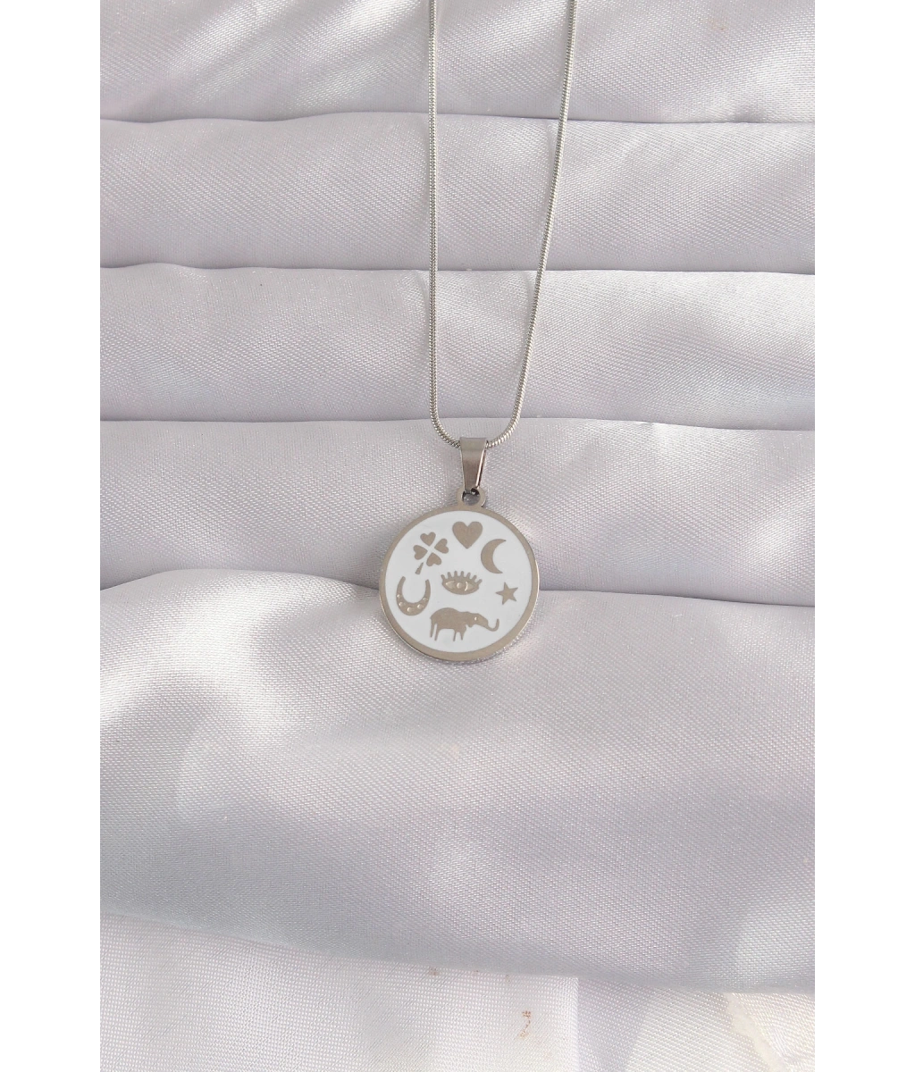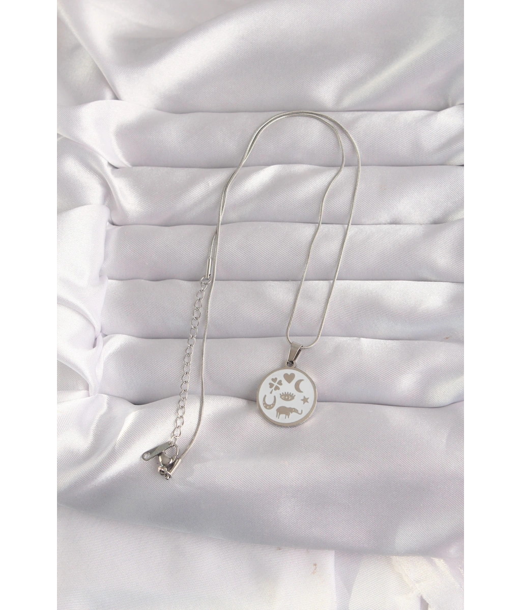 Shoecide 316l Çelik Gümüş Renk Beyaz Mineli Karışık Figürlü Tarot Kolye