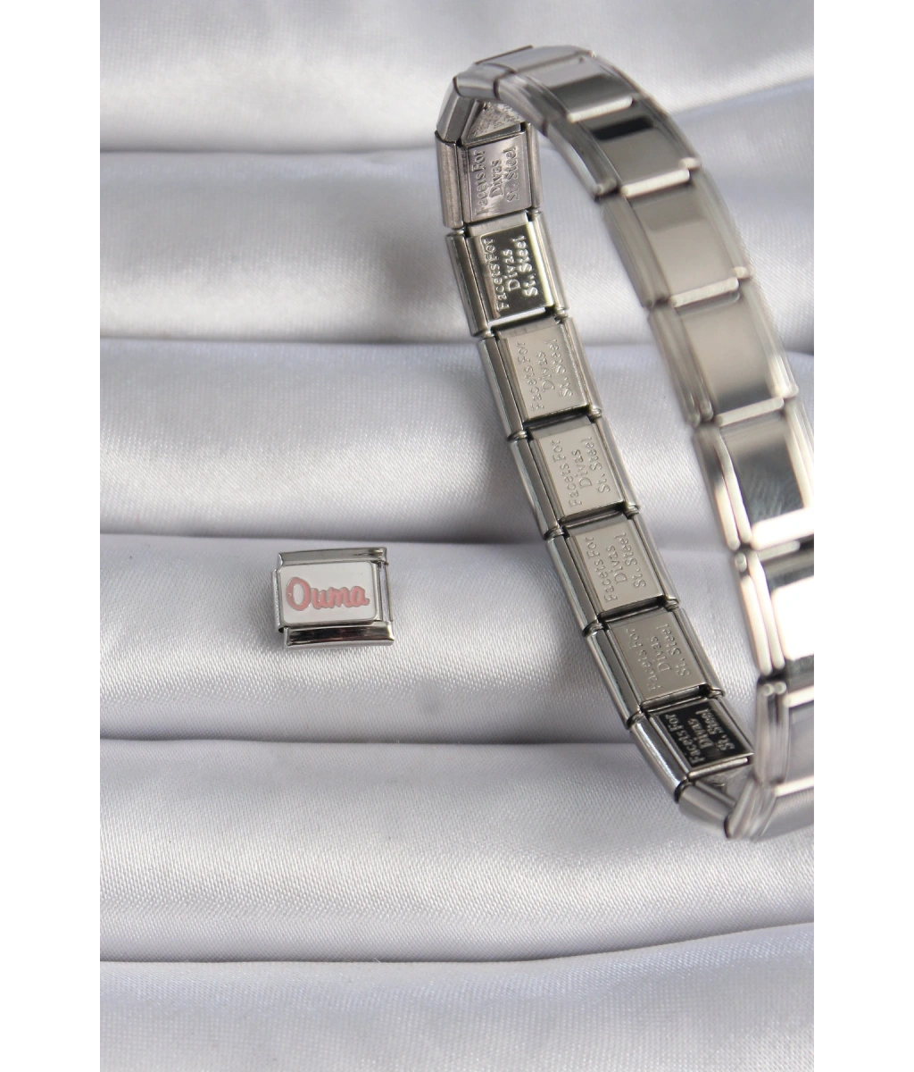 Shoecide 316l Çelik Gümüş Renk Beyaz Pembe Ouma İşlemeli Nomination Charm