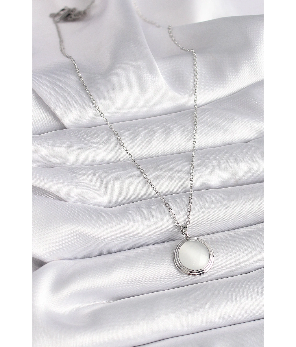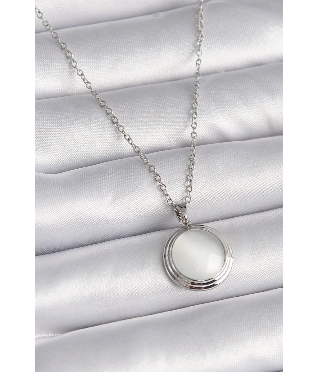 Shoecide 316l Çelik Gümüş Renk Beyaz Sedefli Daire Model Kadın Kolye