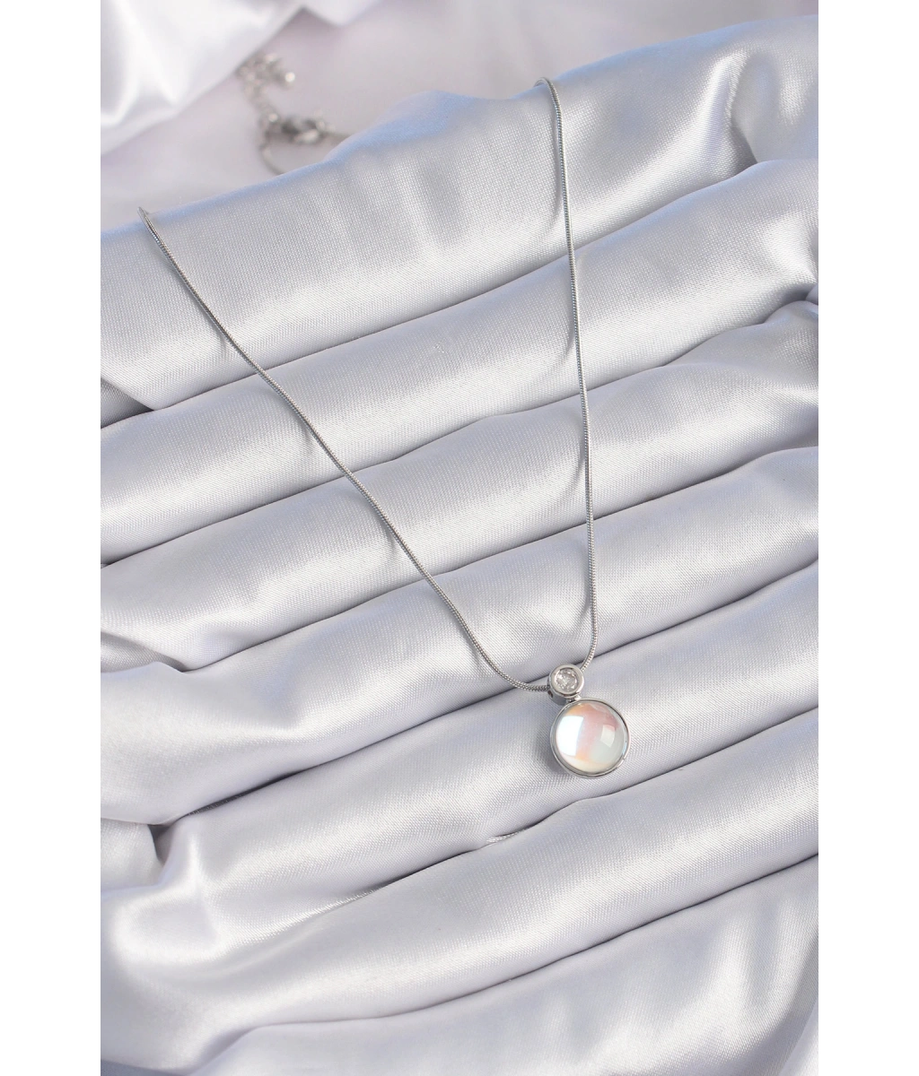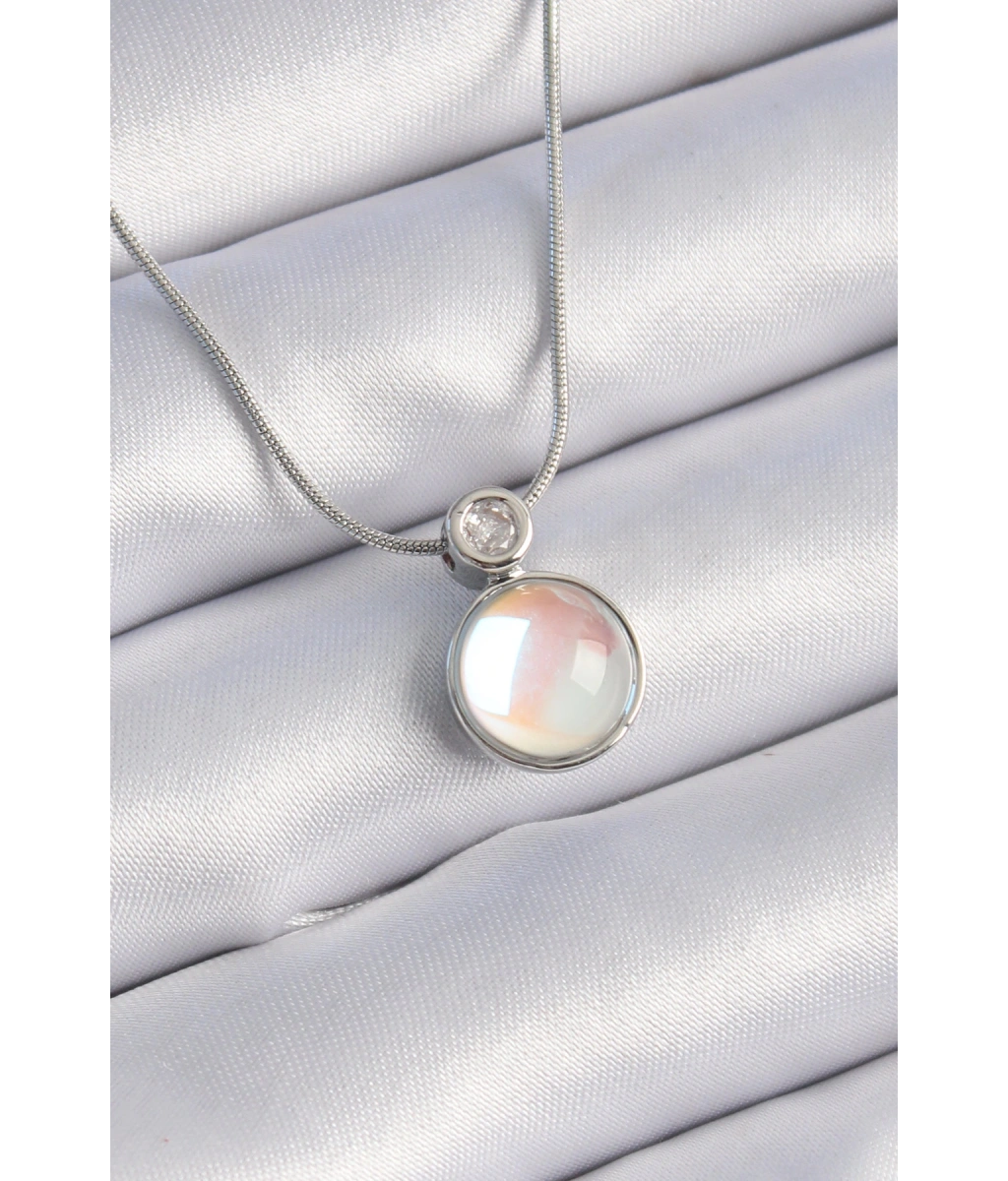 Shoecide 316l Çelik Gümüş Renk Beyaz Sedefli Vintage Model Kadın Kolye