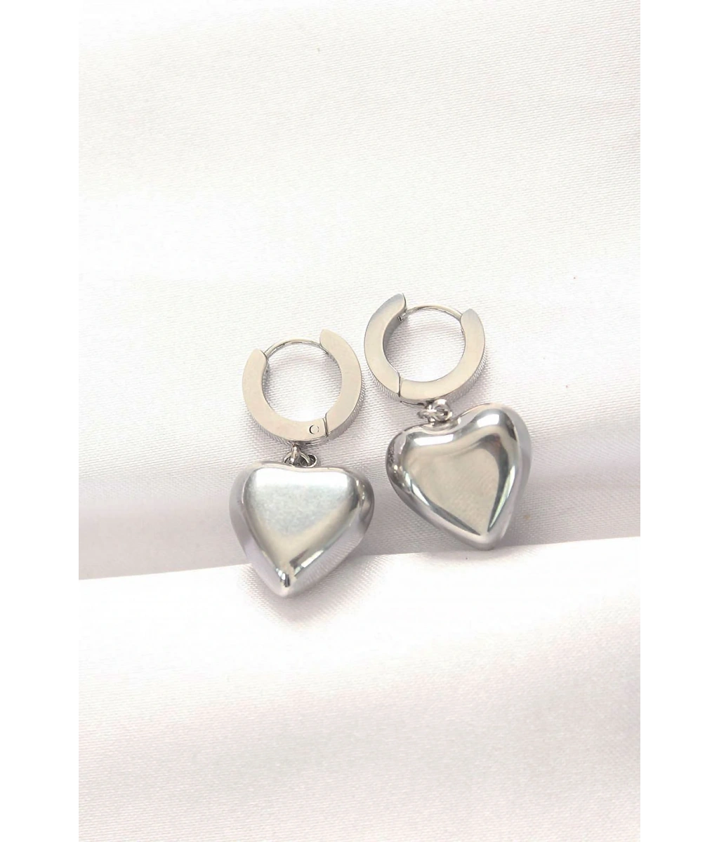 Shoecide 316l Çelik Gümüş Renk Bombeli Kalp Tasarımlı Küpe