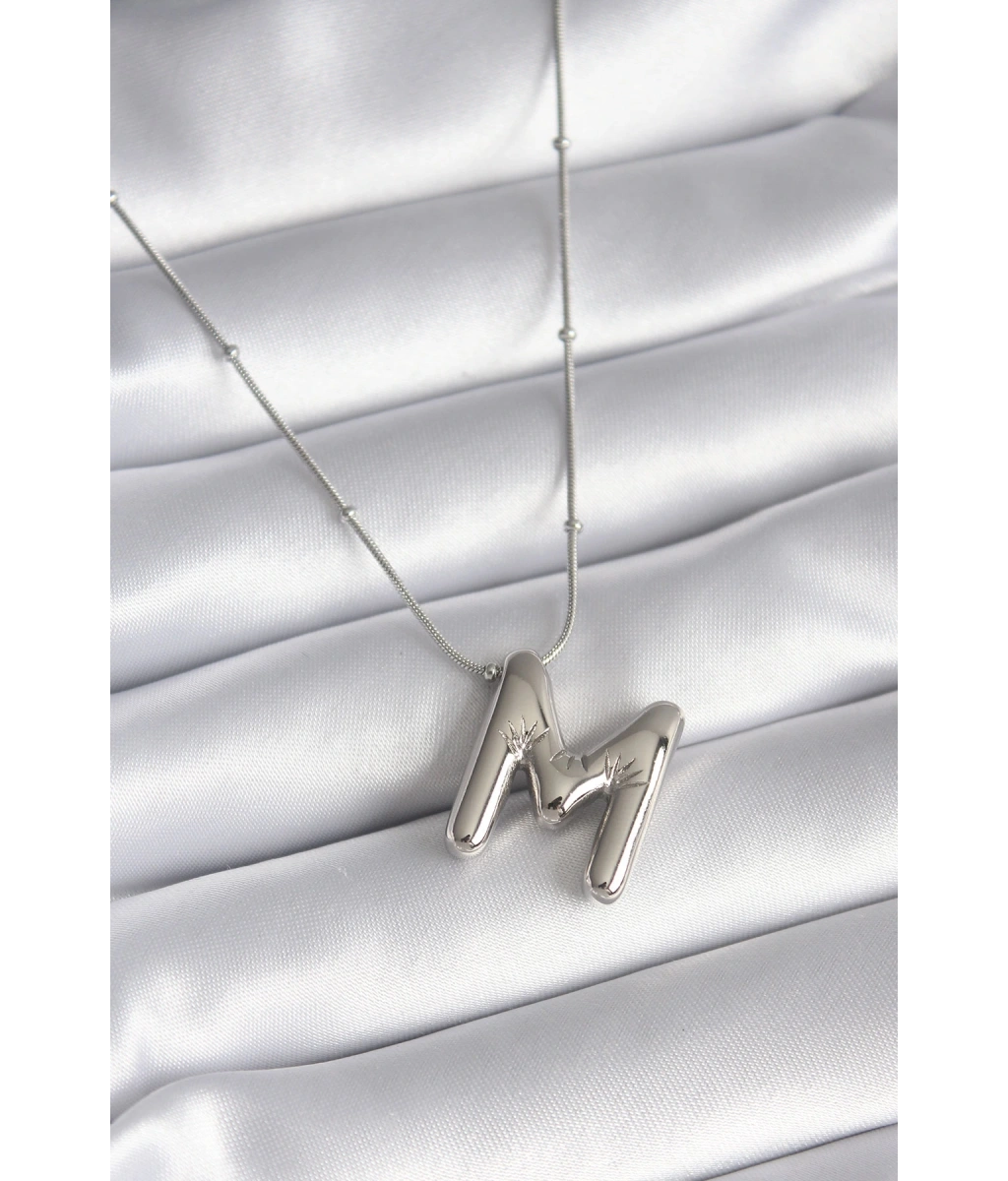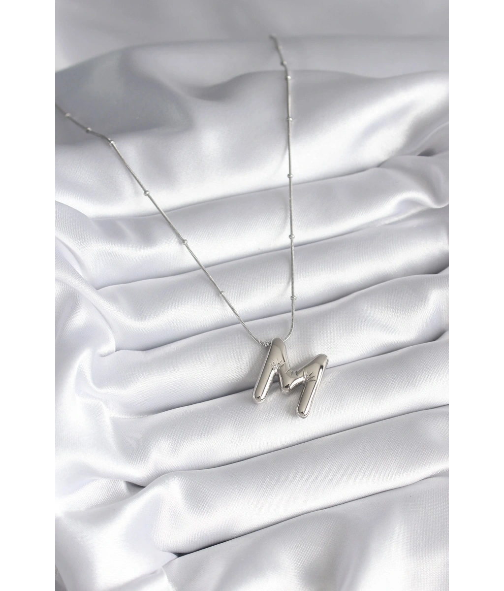 Shoecide 316l Çelik Gümüş Renk Bubble "m" Harf Model Kadın Kolye
