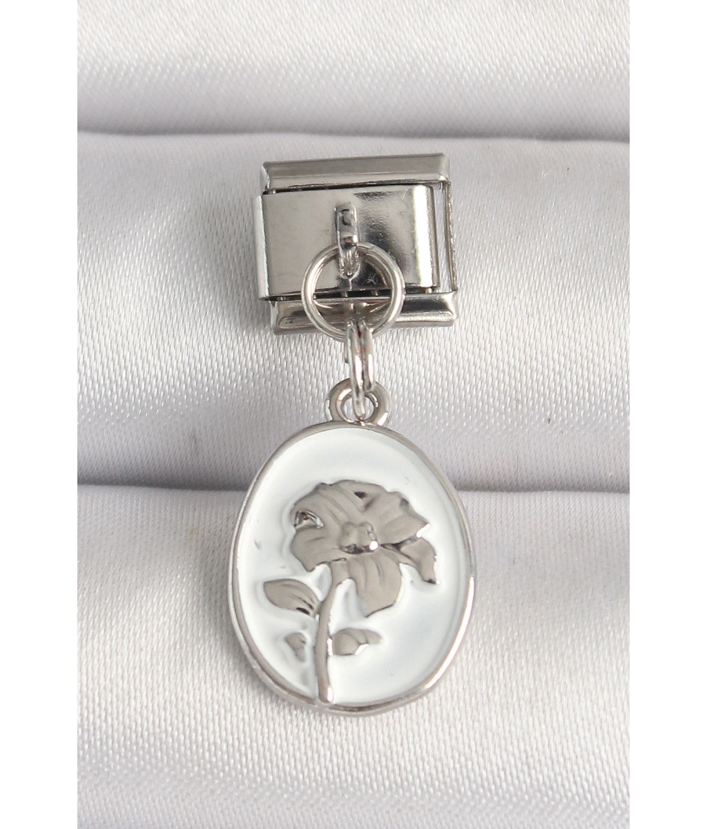 Shoecide 316l Çelik Gümüş Renk Çiçek İşlemeli Beyaz Portre Model Nomination Charm