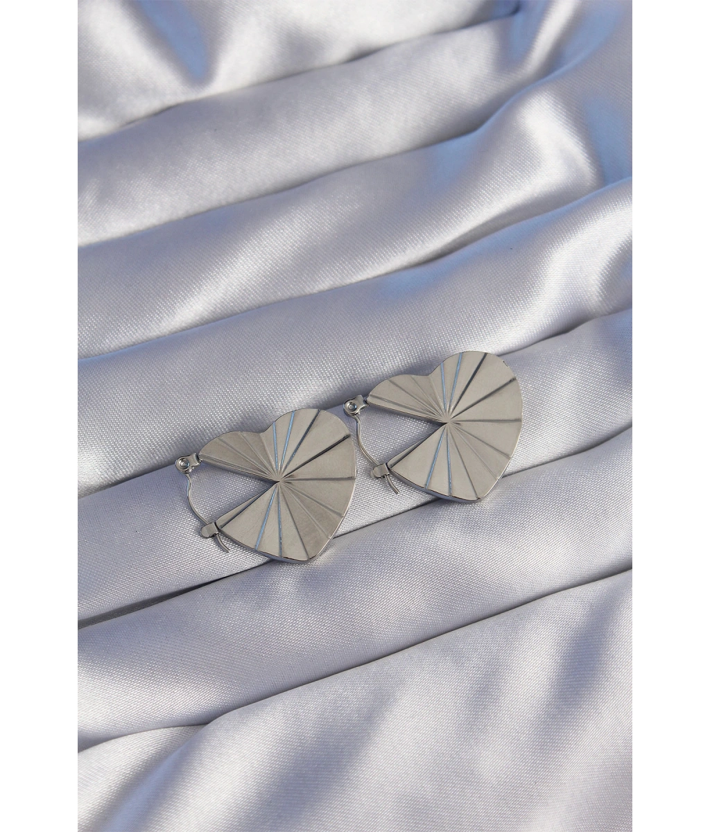 Shoecide 316l Çelik Gümüş Renk Çizgili Plaka Tasarımlı Kalp Küpe