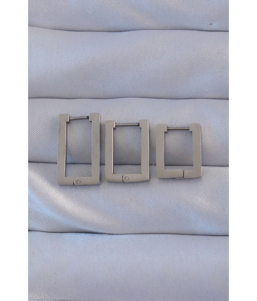Shoecide 316l Çelik Gümüş Renk Dikdörtgen Küpe Seti