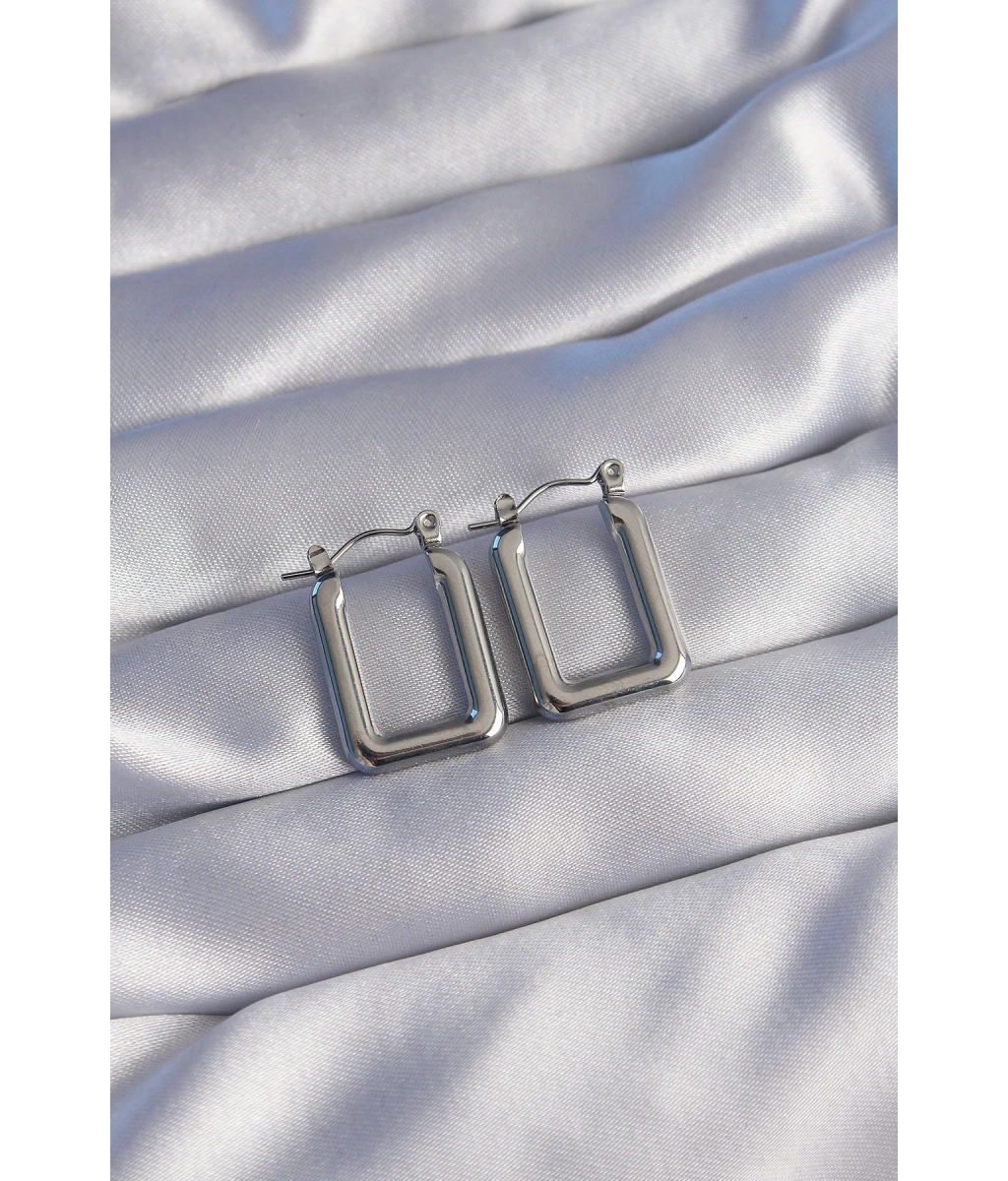 Shoecide 316l Çelik Gümüş Renk Dikdörtgen Model Küpe