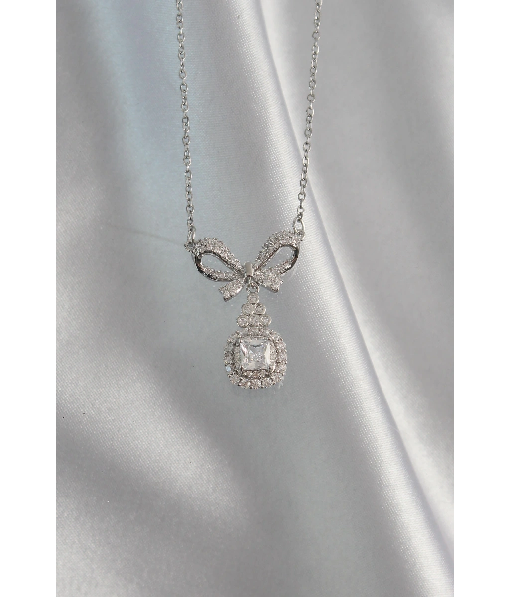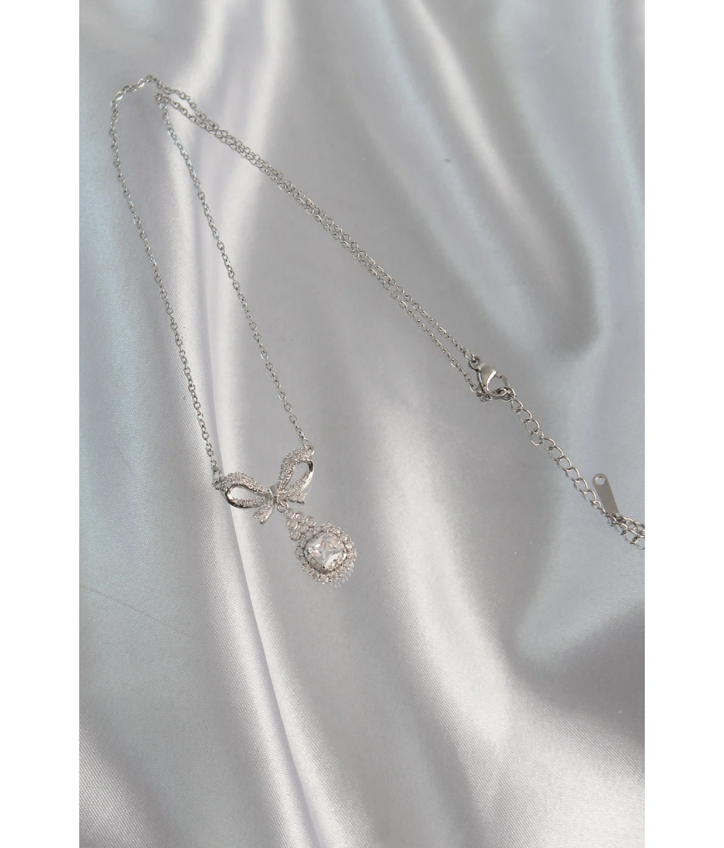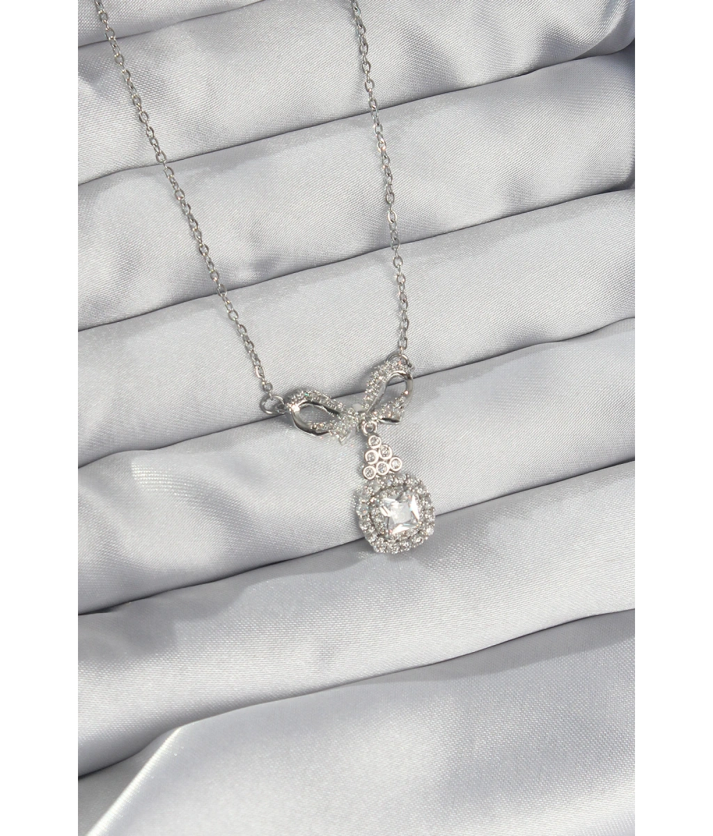 Shoecide 316l Çelik Gümüş Renk Fiyonk Detay Zirkon Taşlı Tektaş Kolye
