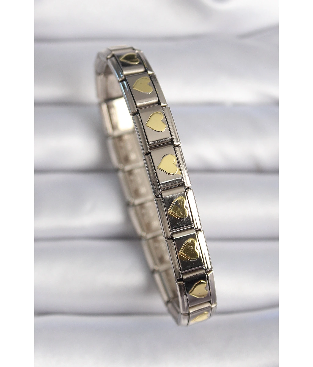 Shoecide 316l Çelik Gümüş Renk Gold Kalp İşleme Nomination Charm Bileklik