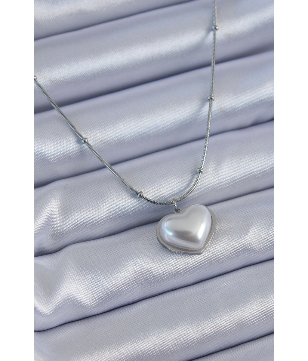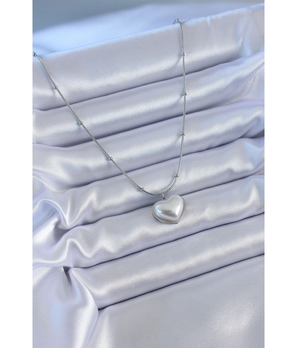 Shoecide 316l Çelik Gümüş Renk İncili Kalp Model Minimal Top Detay Kadın Kolye