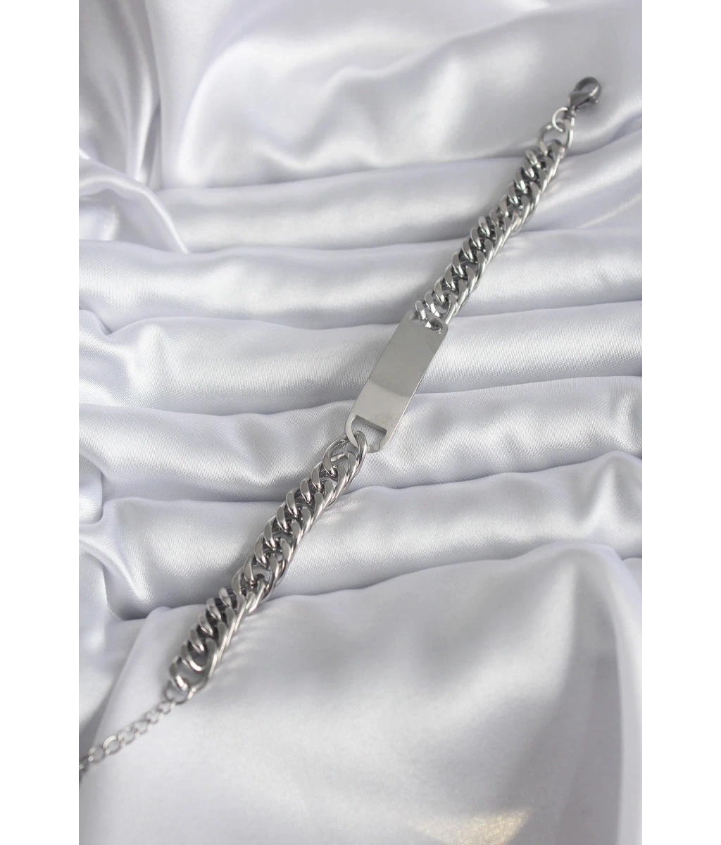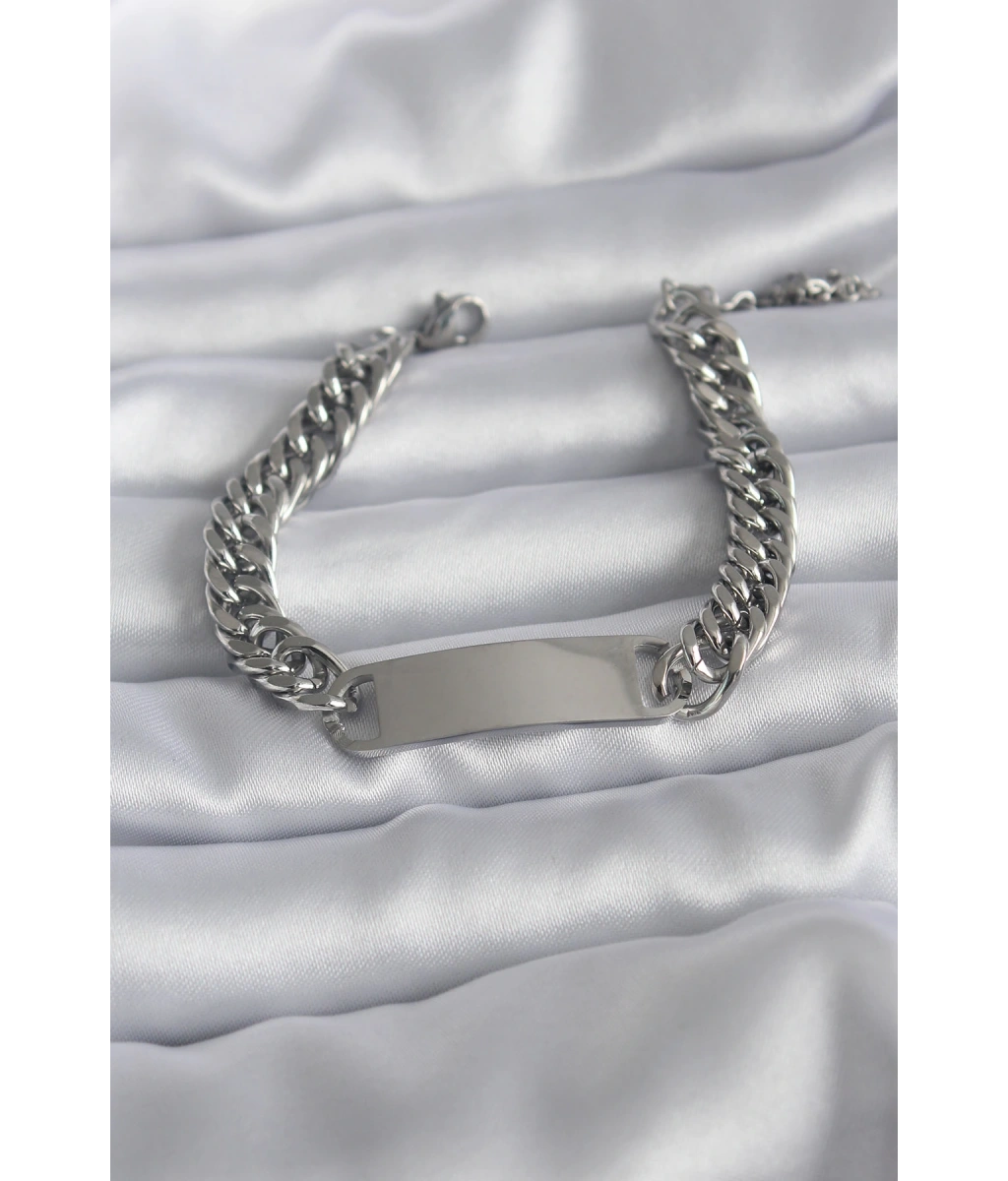 Shoecide 316l Çelik Gümüş Renk İsim Yazılabilir Plaka Model Kadın Bileklik