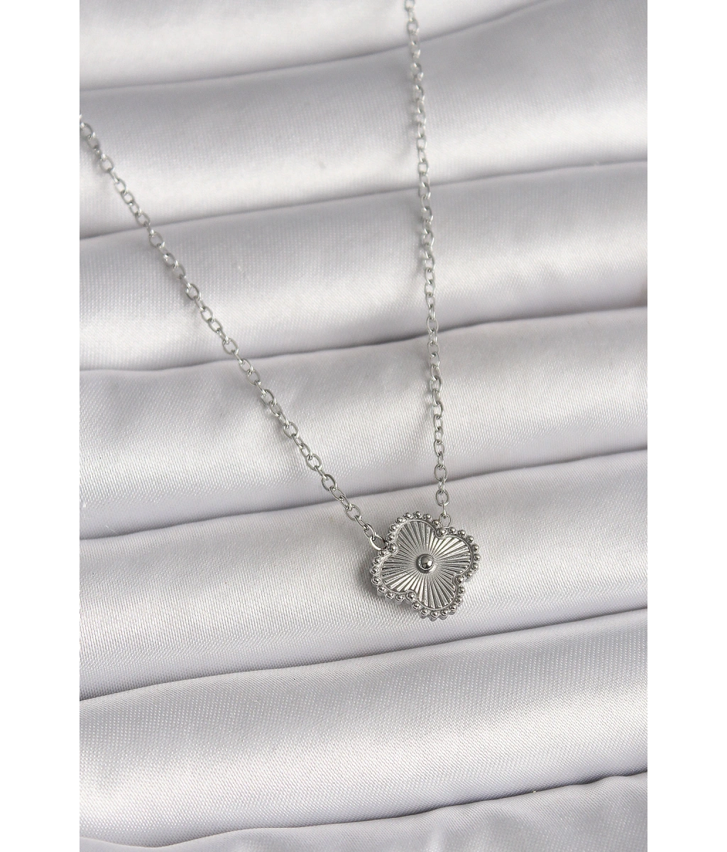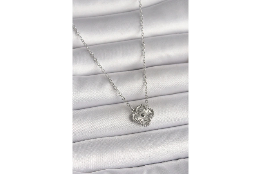 Shoecide 316l Çelik Gümüş Renk İşleme Detaylı Yonca Model Kadın Kolye