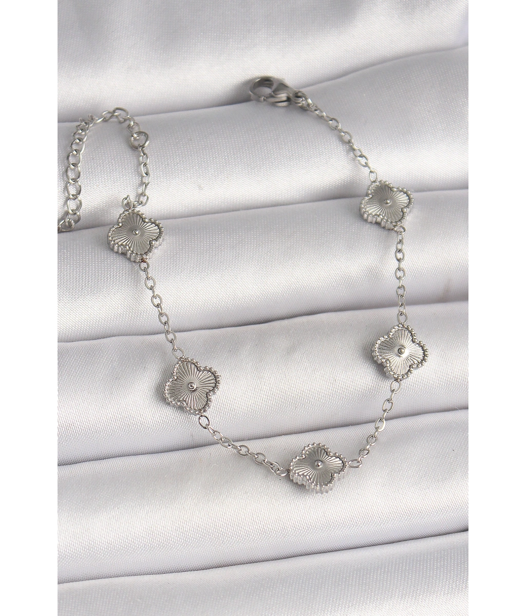 Shoecide 316l Çelik Gümüş Renk İşlemeli Baby Boy Yonca Model Kadın Bileklik