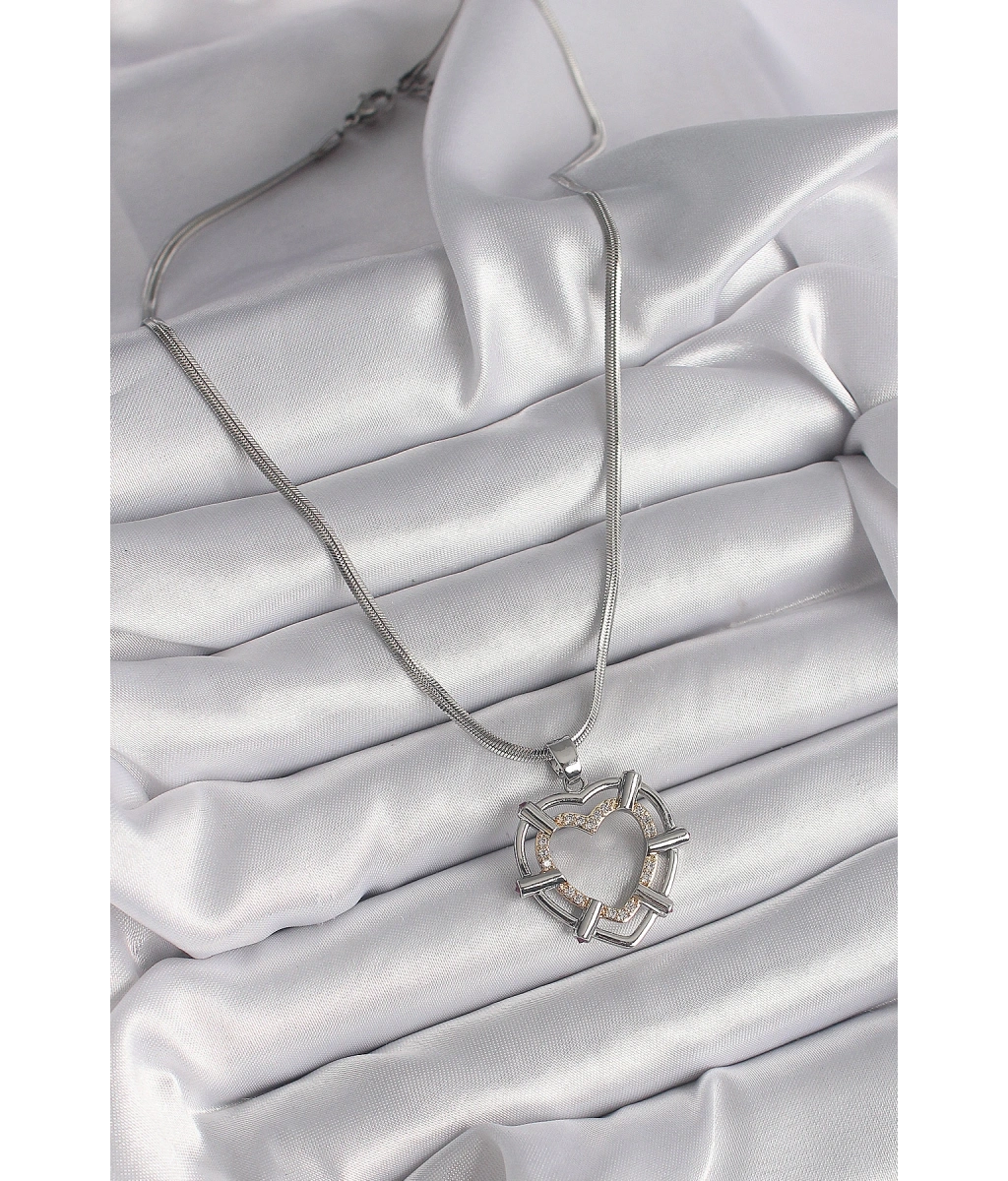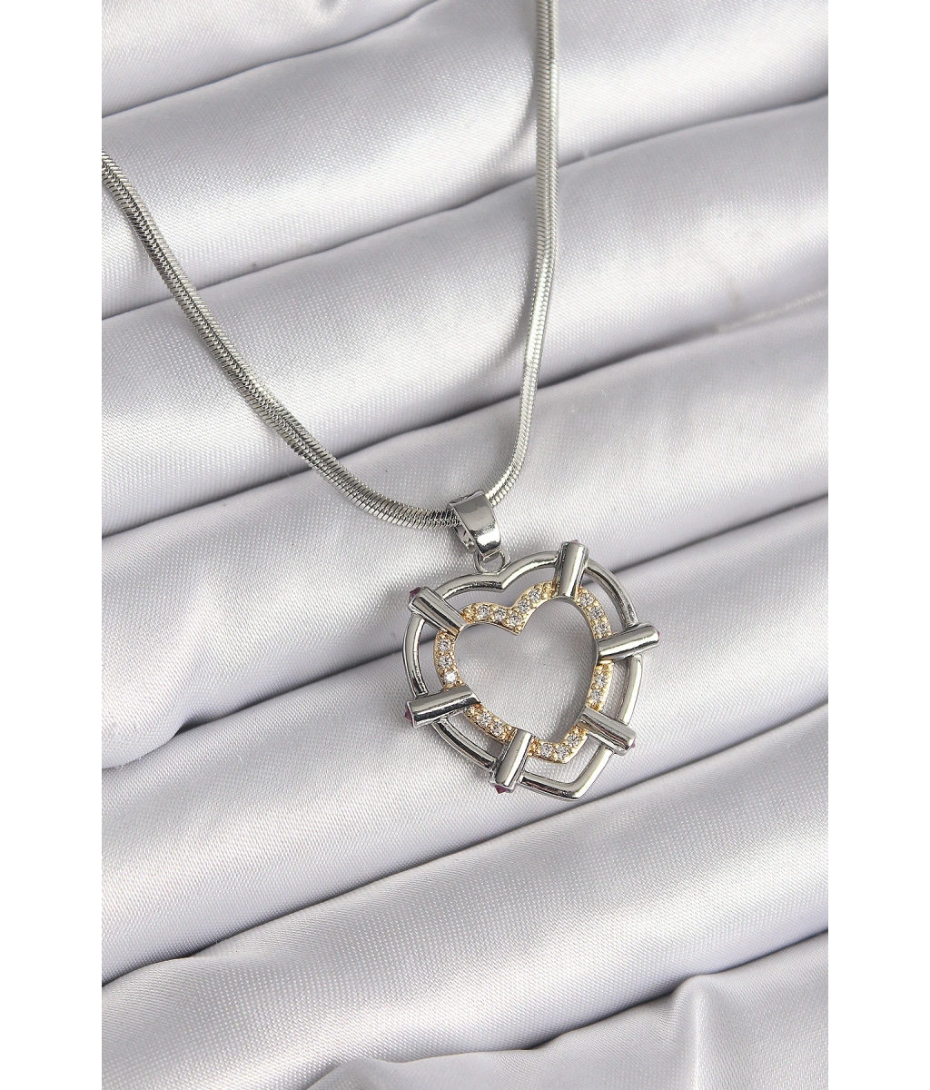 Shoecide 316l Çelik Zincir Gümüş Zirkon Taşlı Kalpli Kadın Kolye