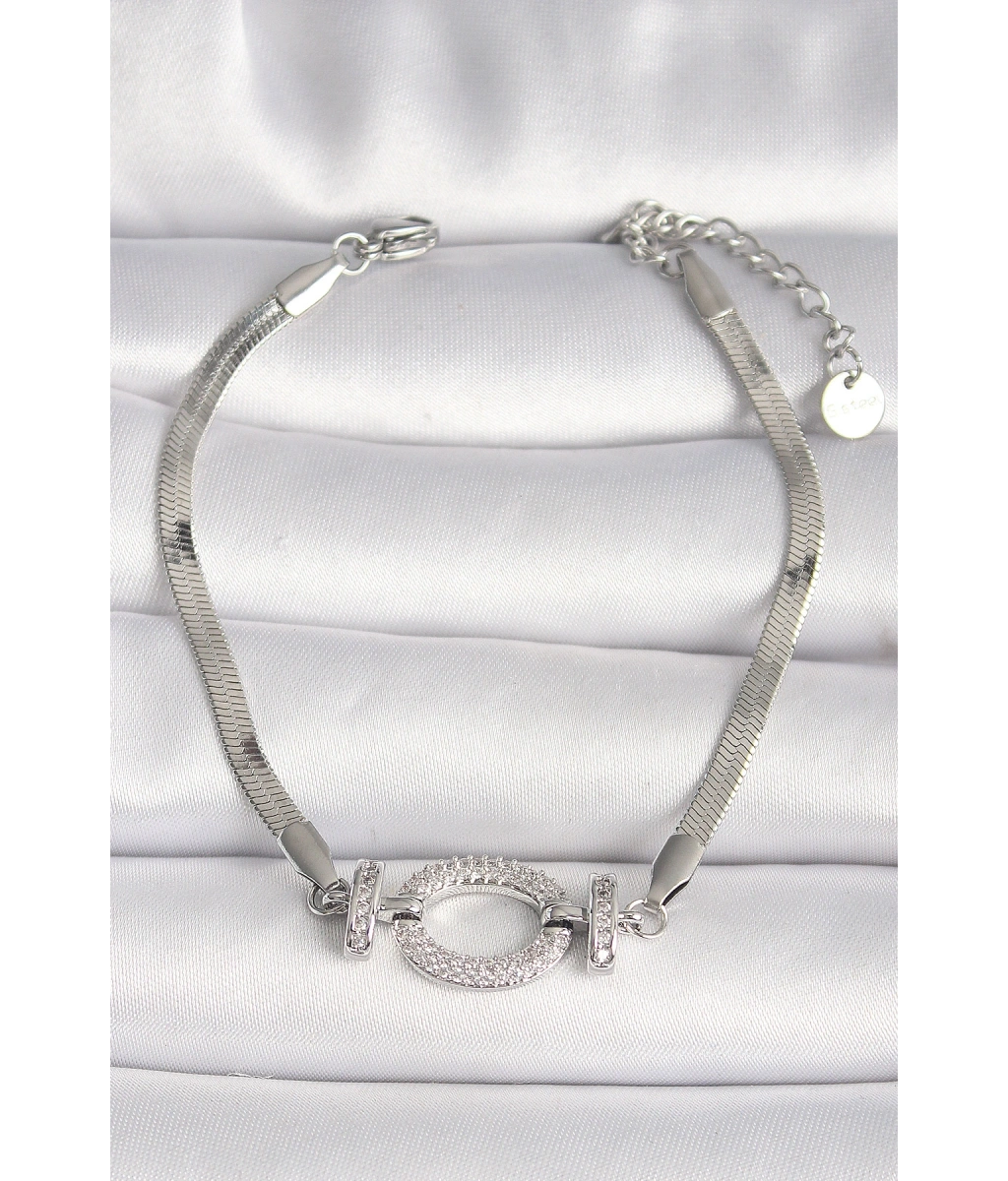 Shoecide 316l Çelik Gümüş Renk İtalyan Zincir Model Zirkon Taşlı Halka Figür Kadın Bileklik