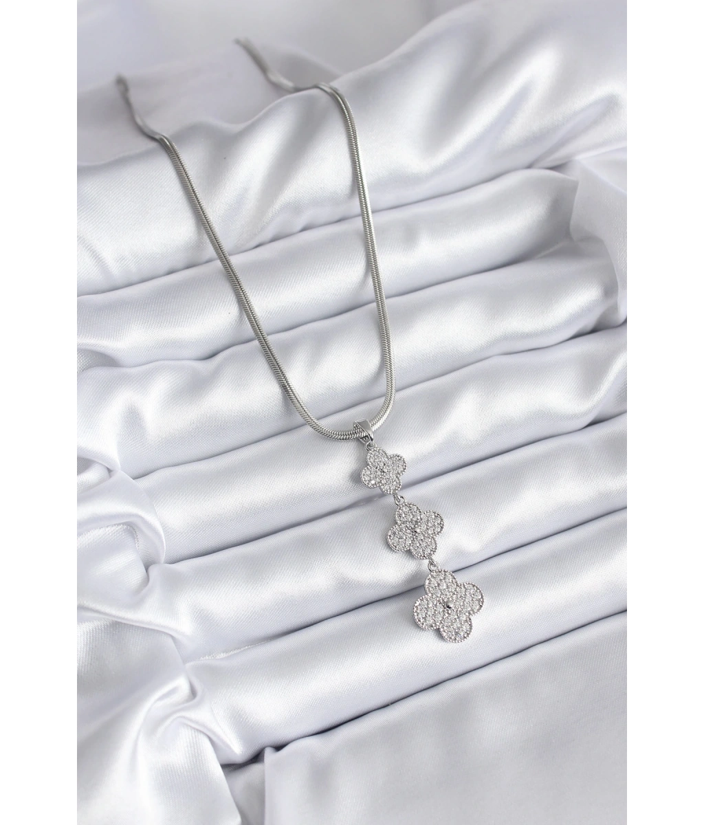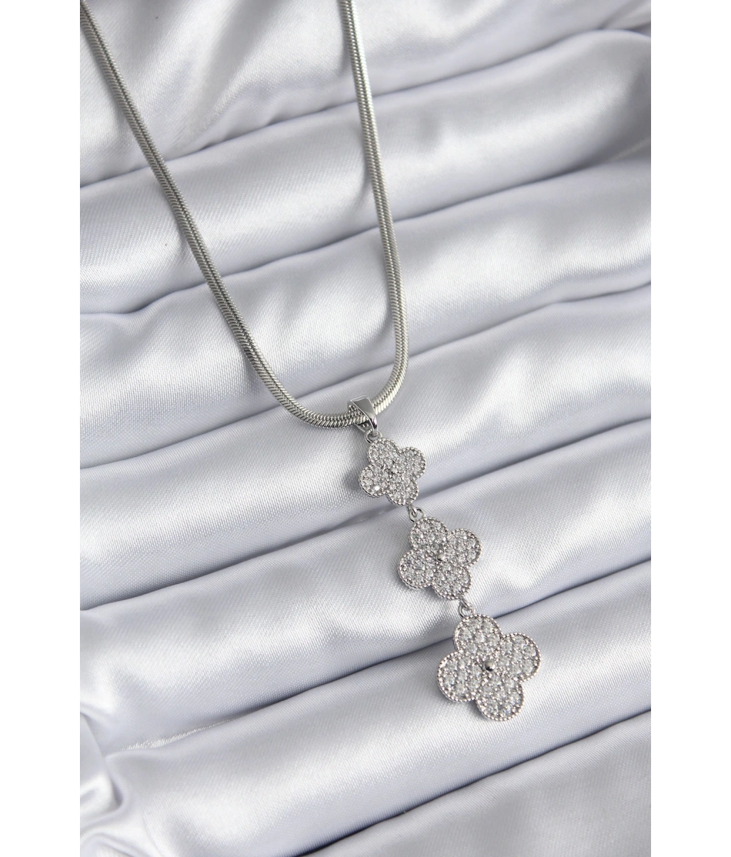 Shoecide 316l Çelik Gümüş Renk İtalyan Zincir Zirkon Taşı Yonca Model Kadın Kolye
