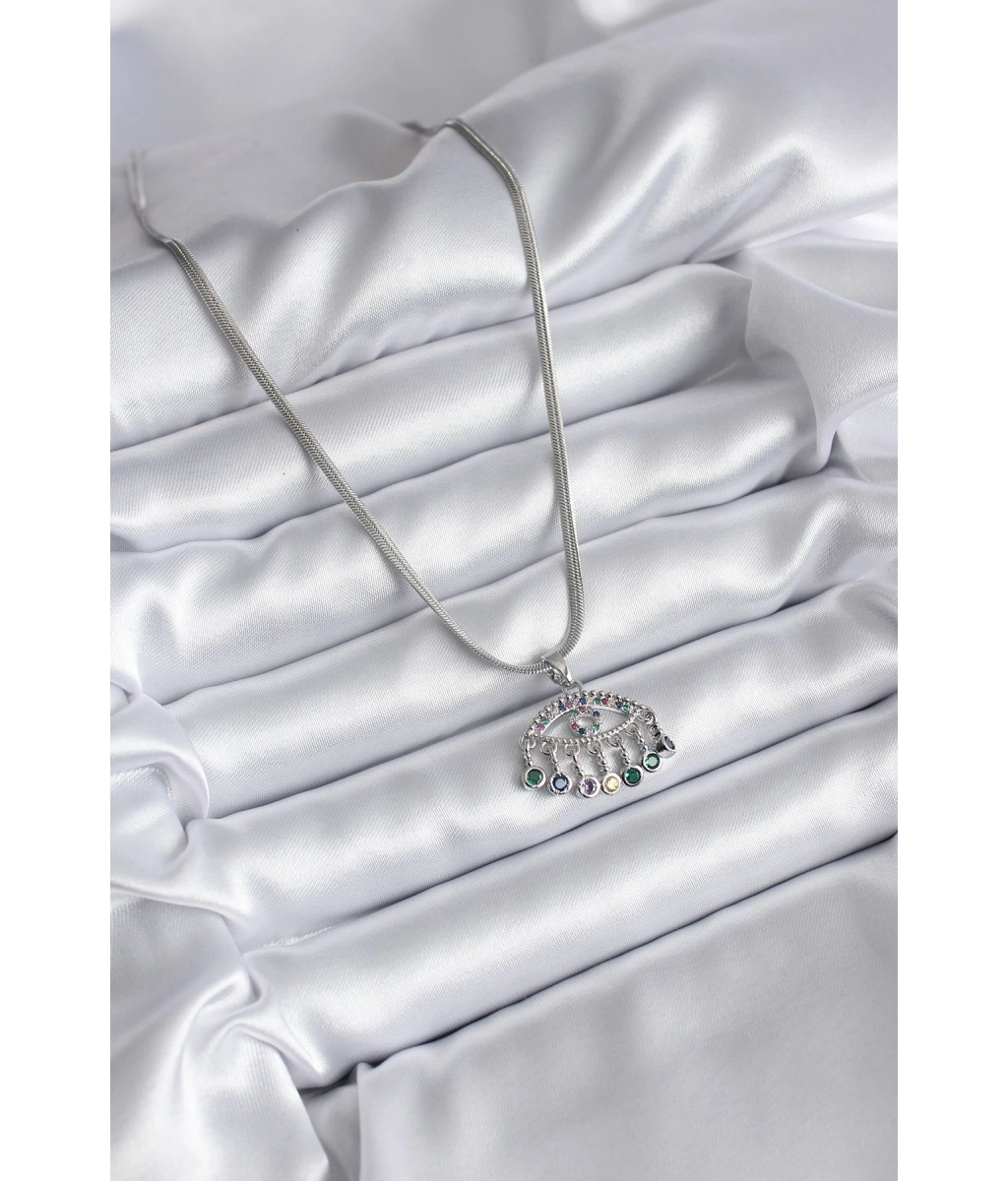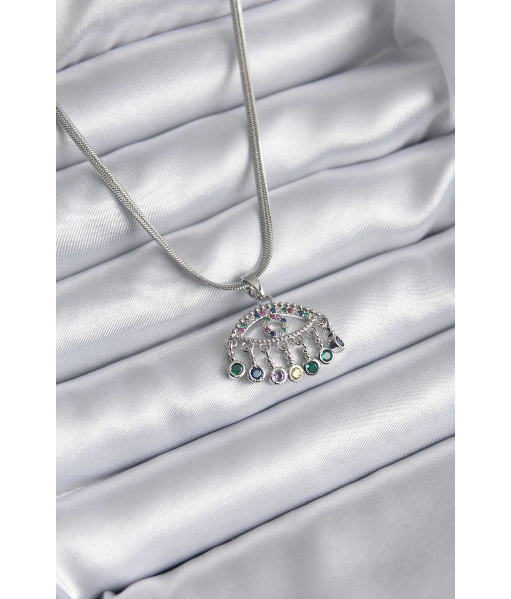Shoecide 316l Çelik Gümüş Renk İtalyan Zincir Zirkon Taşlı Göz Figür Kadın Kolye