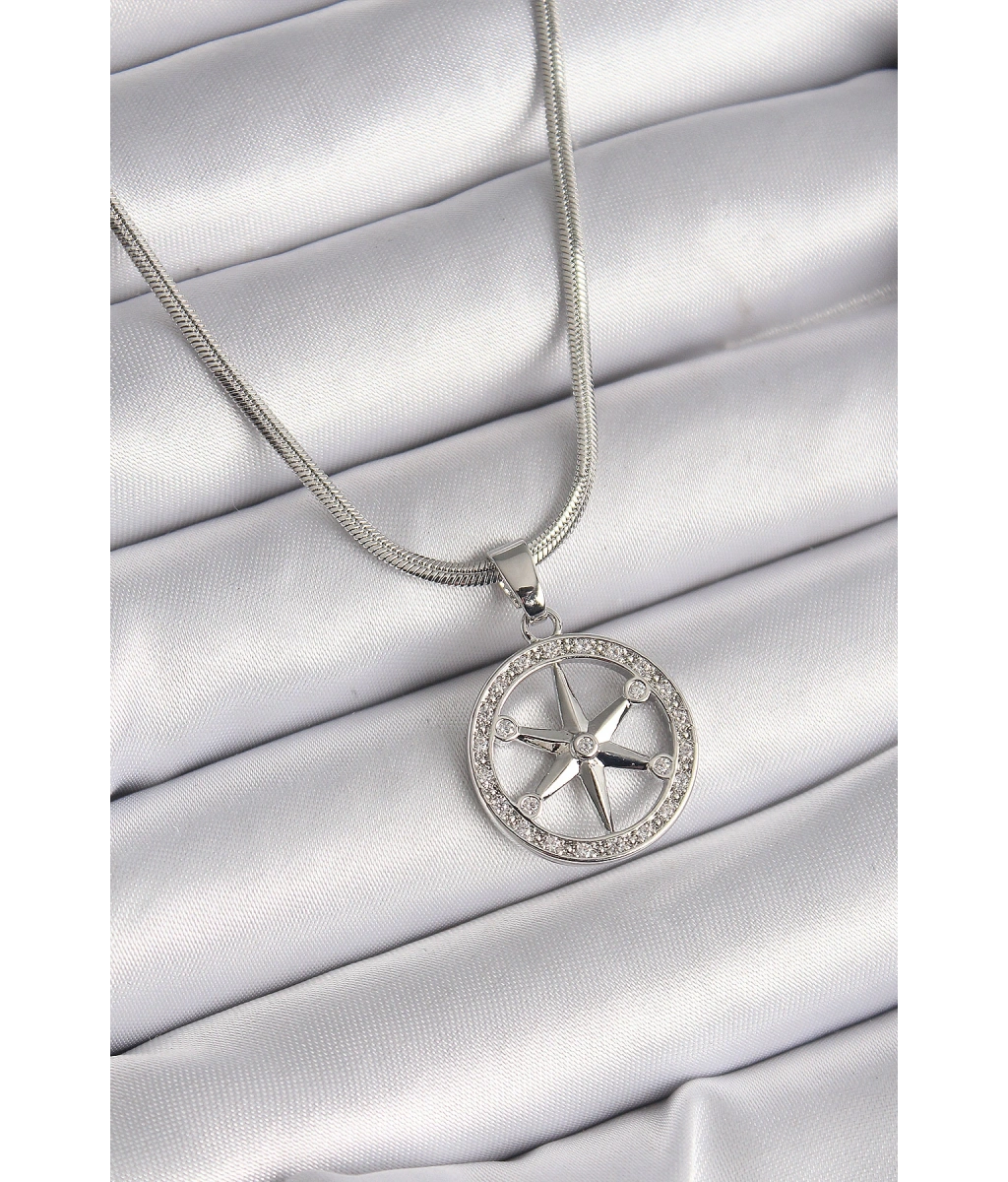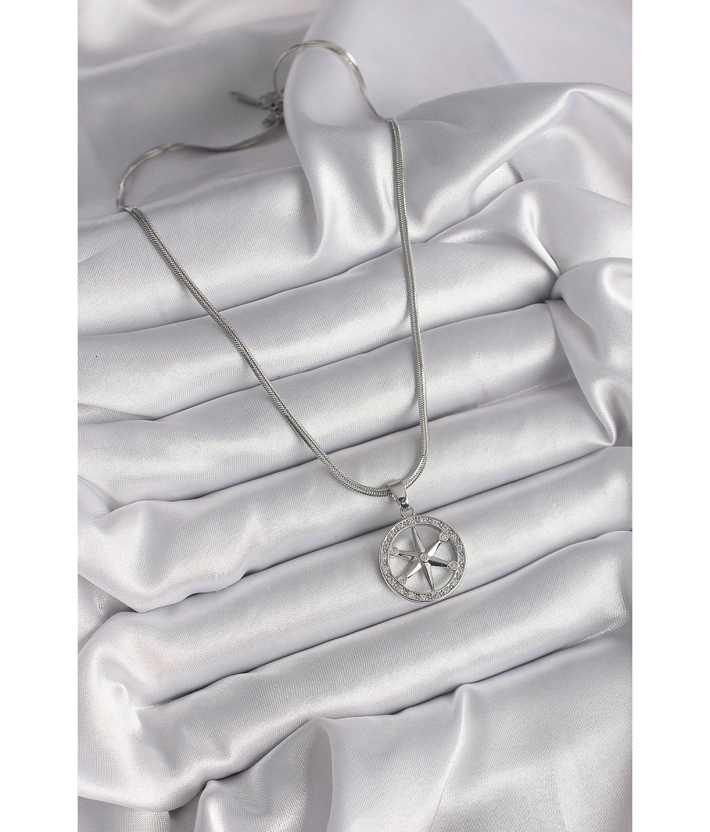 Shoecide 316l Çelik Gümüş Renk İtalyan Zincir Zirkon Taşlı Kutup Yıldız Model Kadın Kolye