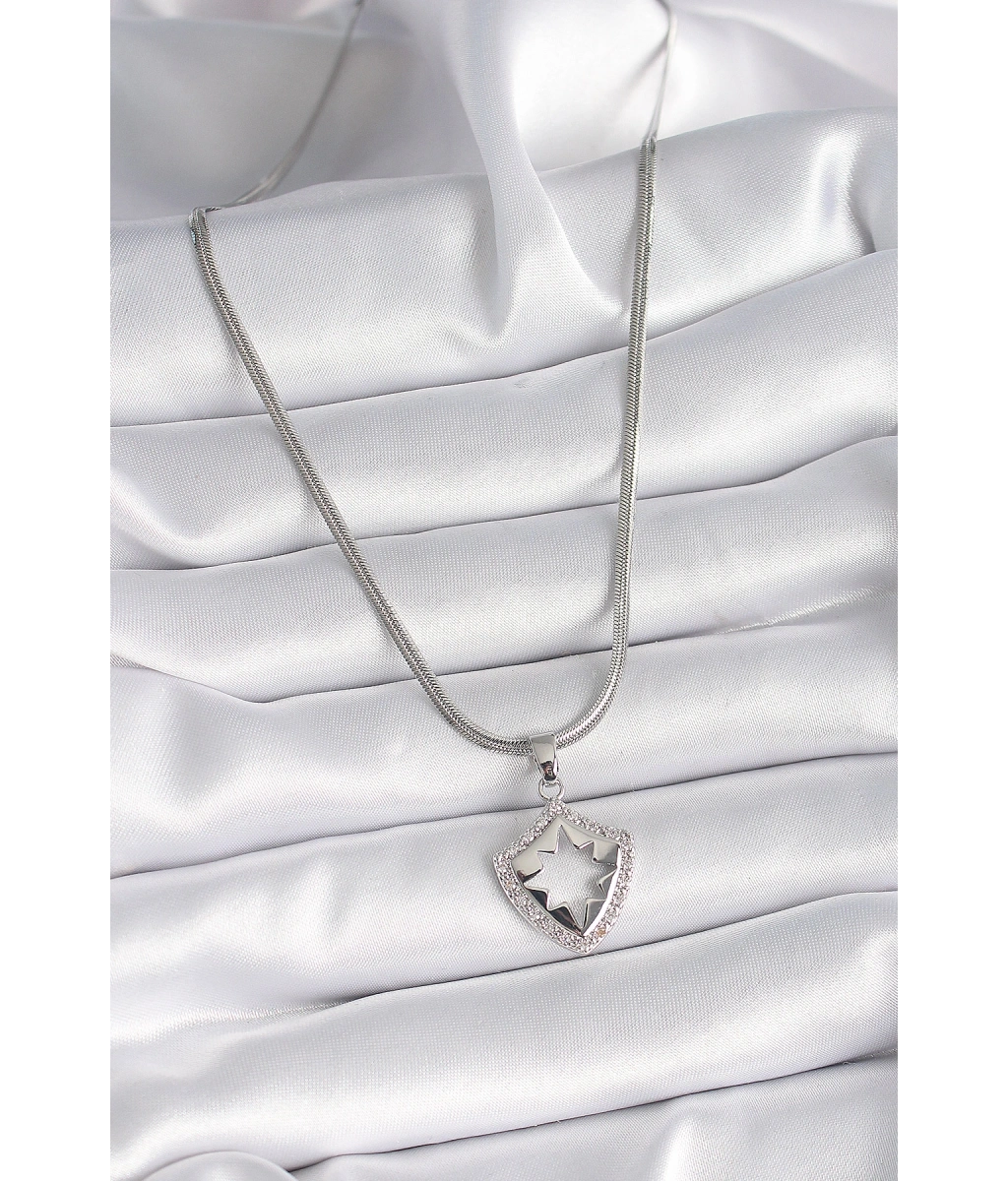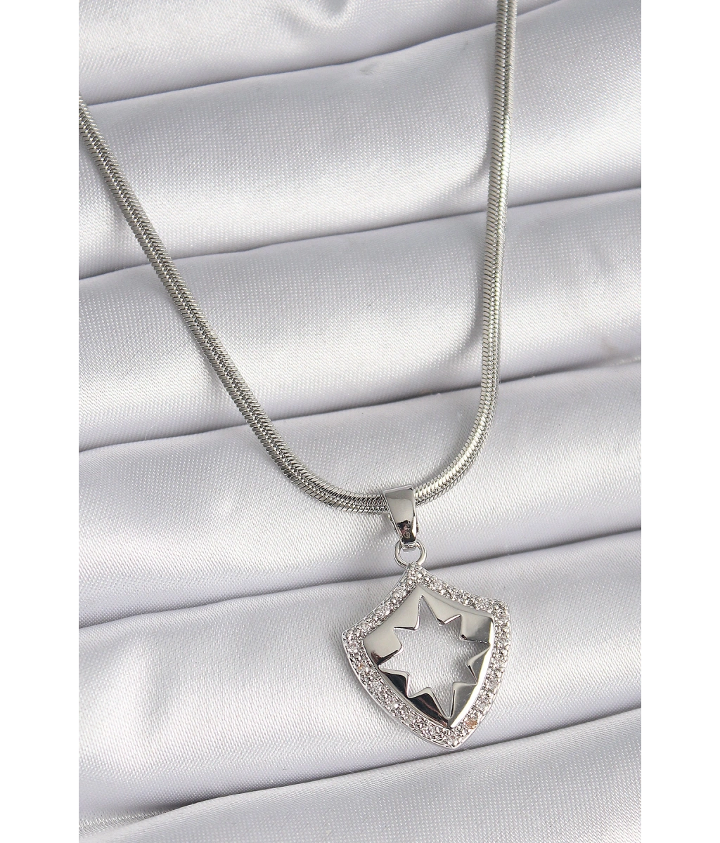 Shoecide 316l Çelik Gümüş Renk İtalyan Zincir Zirkon Taşlı Kutup Yıldızı İşleme Model Kadın Kolye