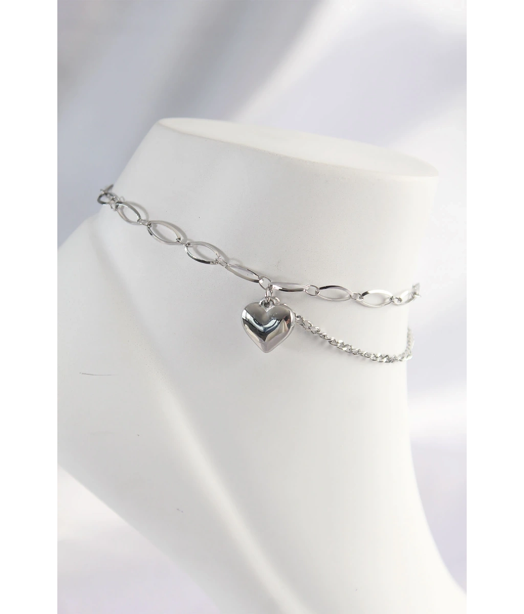 Shoecide 316l Çelik Gümüş Renk Kalp Tasarımlı Halhal