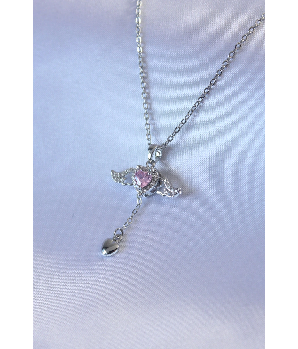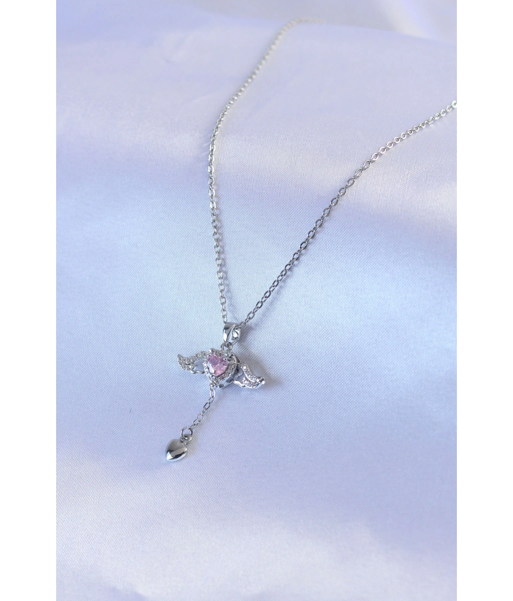 Shoecide 316l Çelik Gümüş Renk Kanatlı Kalp Figür Zirkon Taş Detay Kadın Kolye